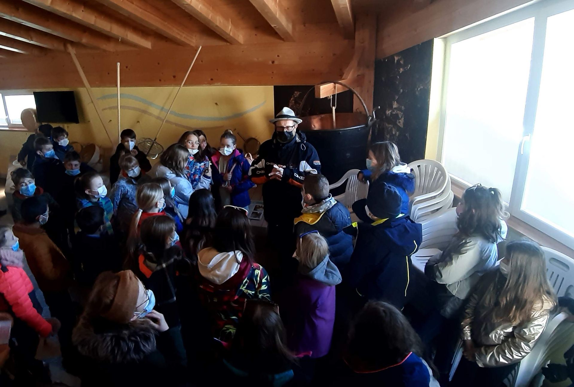 Avant de skier une dernière fois avec leur moniteur, les enfants ont eu un échauffement personnalisé par Monsieur Sébastien…