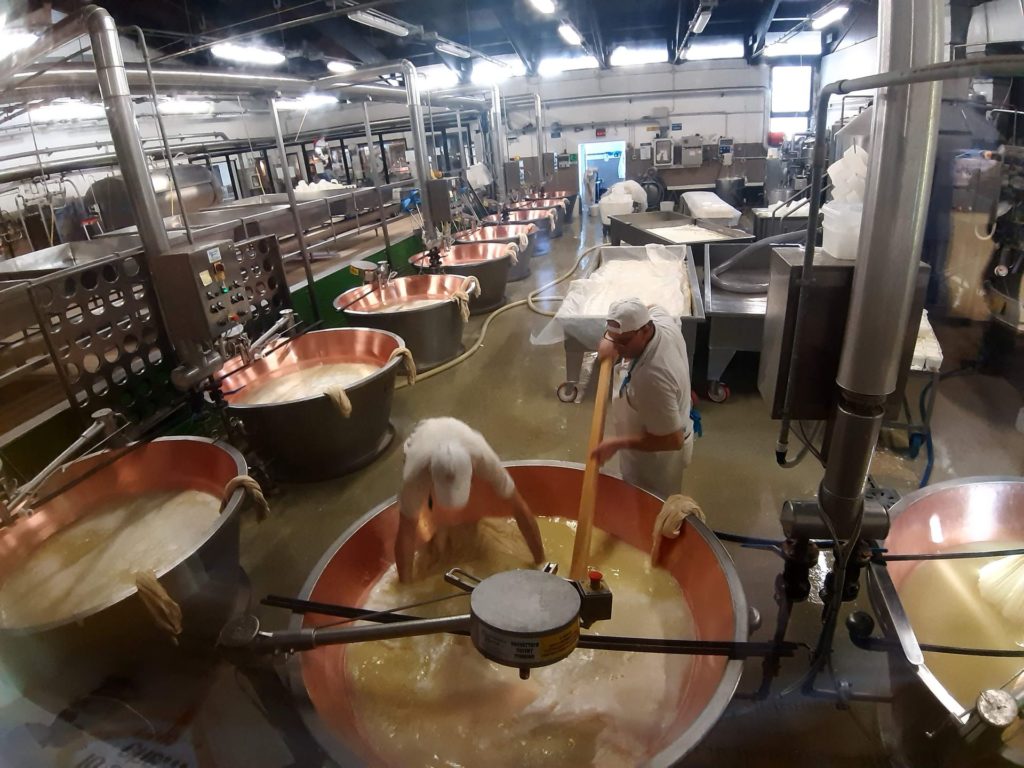 Une large place est ensuite réservée à la description des produits, à leur qualité intrinsèque et, last but not least, à la connaissance des 38 producteurs membres et de leurs entreprises. Les enfants ont également pu observer à travers une grande fenêtre toutes les étapes de la transformation du lait , de l’écrémage de la crème, à la naissance des véritables formes de fromage, pour arriver à admirer la « voûte », l’entrepôt d’assaisonnement Trentingrana, dans lequel se reposent des centaines de fromages (pour une valeur totale de 4,5 millions d’euros, j’ai compté…).