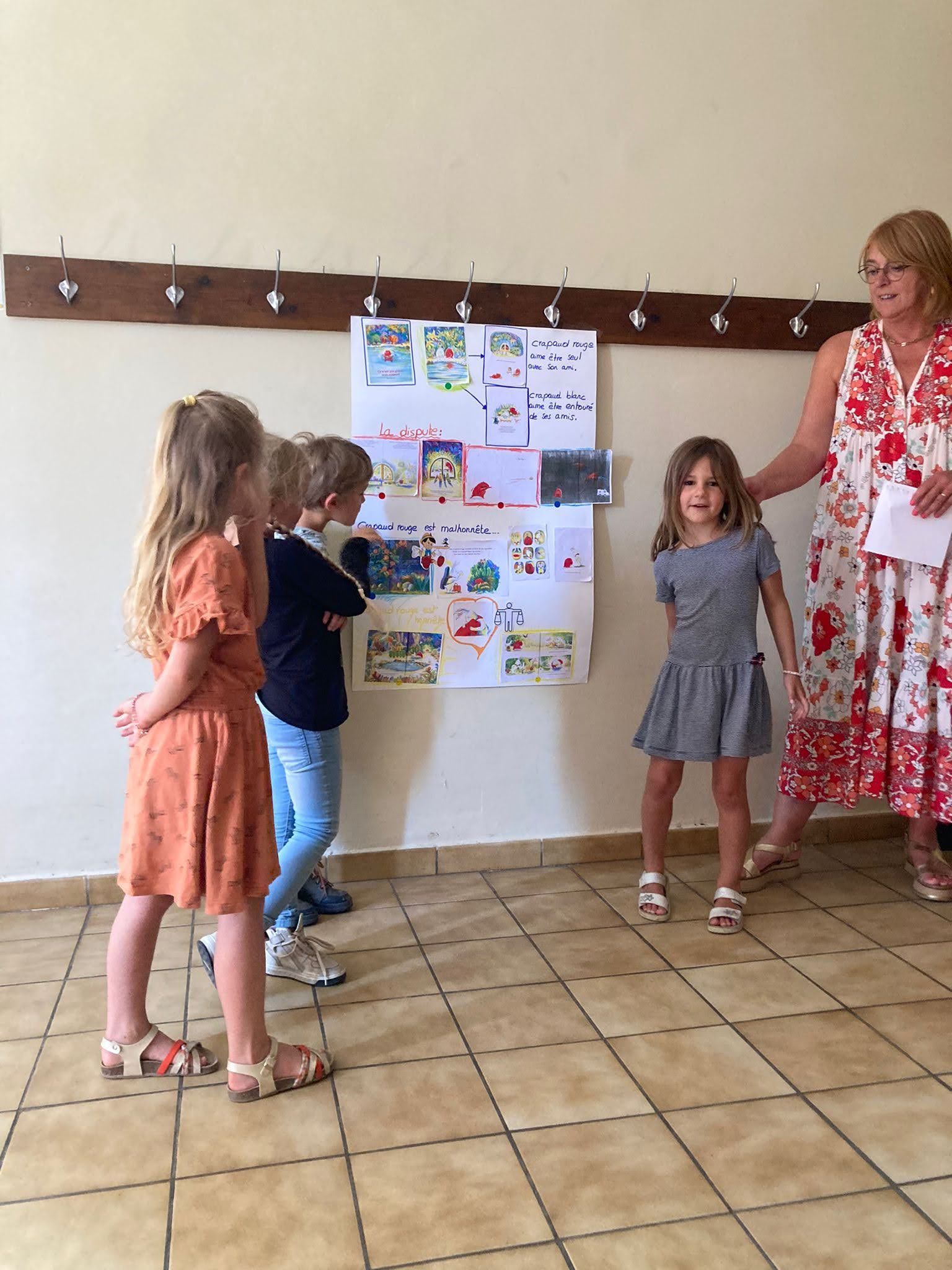 Les élèves de Madame Sophie (M2-3) ont présenté un album traitant de l’honnêteté, à savoir « Ce n’est pas grave mon crapaud ».