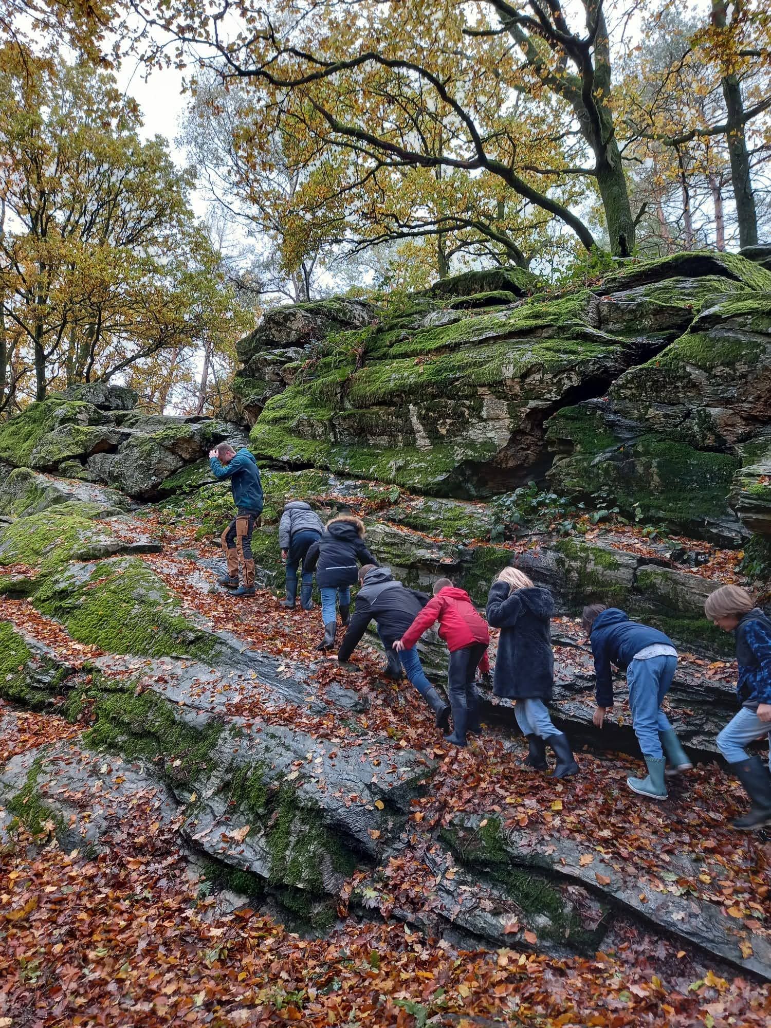 En début d’après-midi, nous avons fait connaissance avec notre guide, Ticho. La première animation consistait en une balade de plus ou moins 6 km de type « aventure ». C’est ainsi que nous avons escaladé l’imposant « Rocher du Diable ».