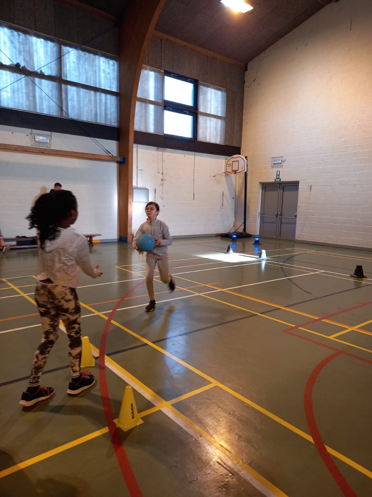 Ce mardi 29 janvier 2024, les élèves de la classe de Madame Caroline (P5-6) ont participé à une animation durant laquelle ils ont eu l’occasion de « manier le ballon » dans différentes situations.