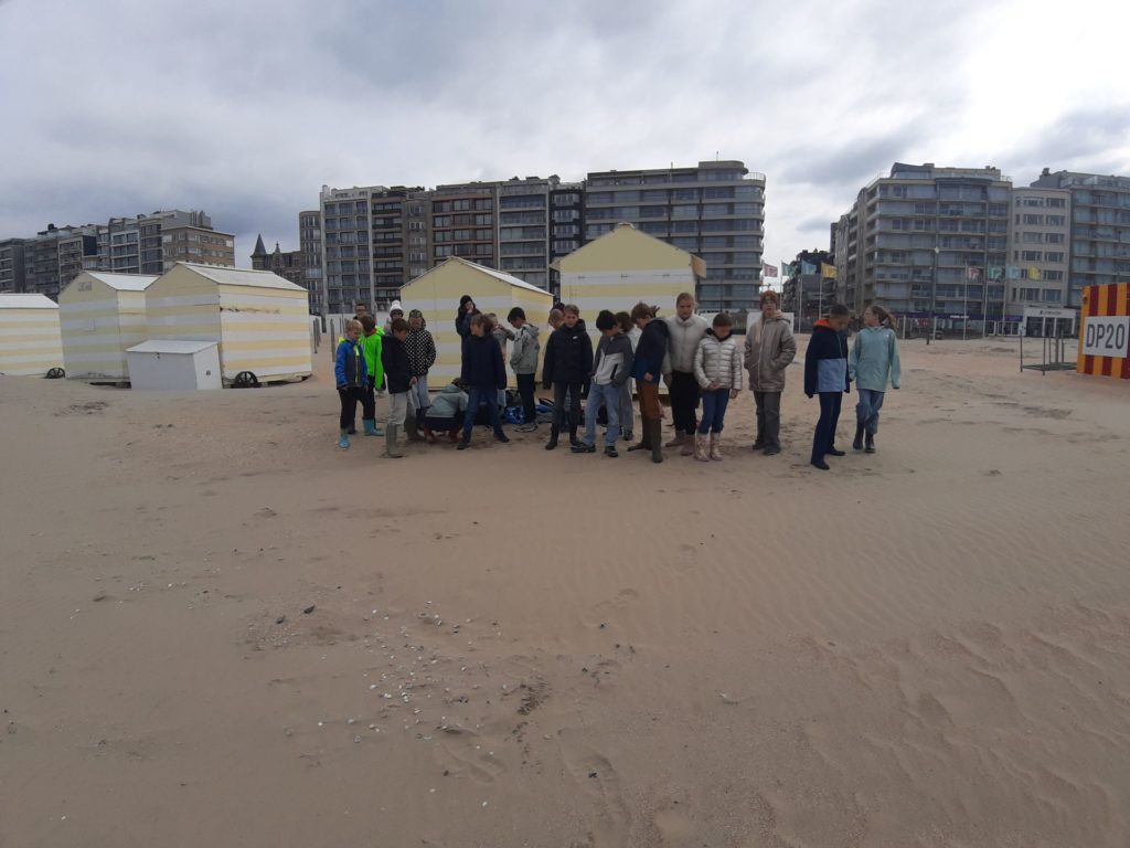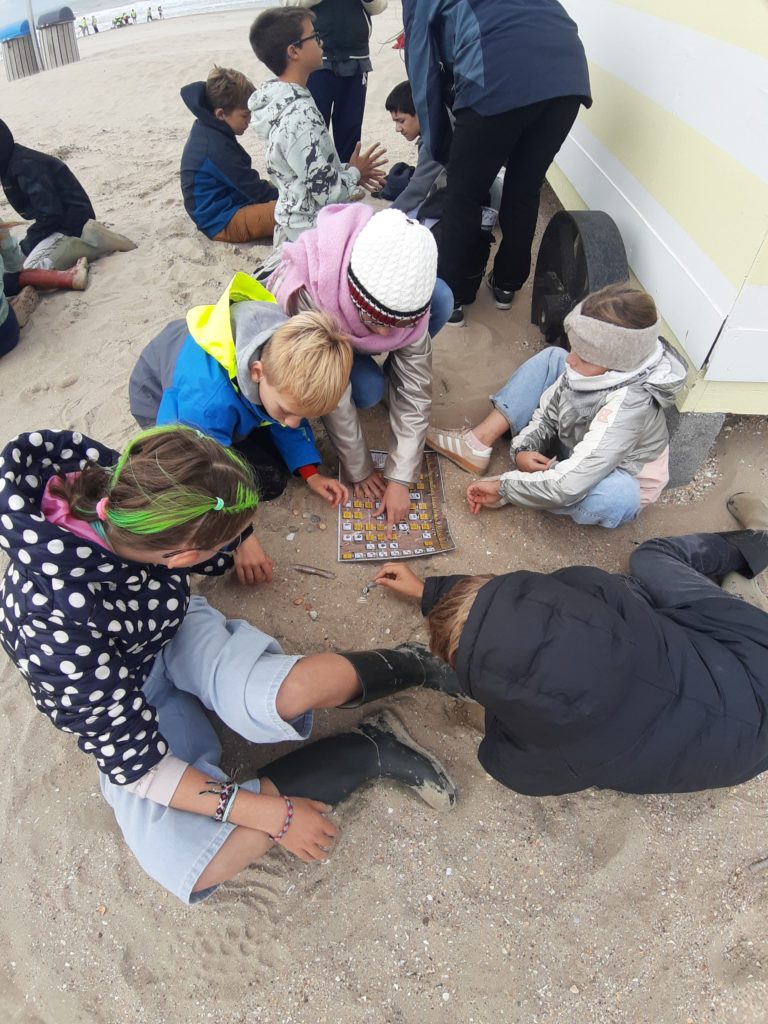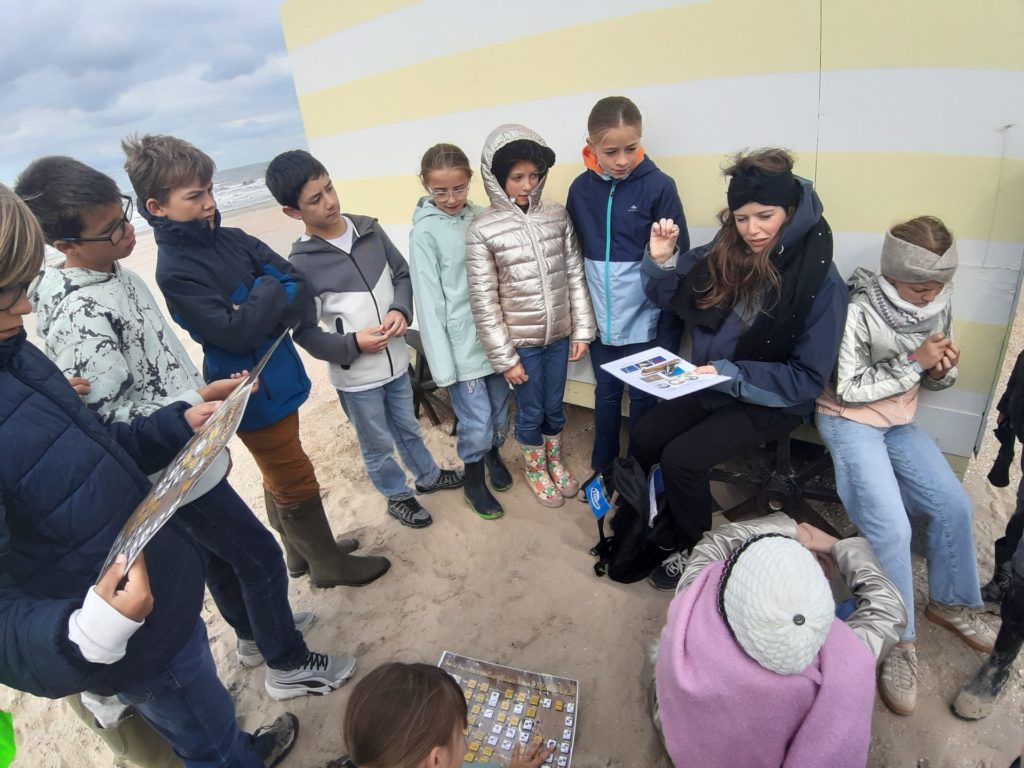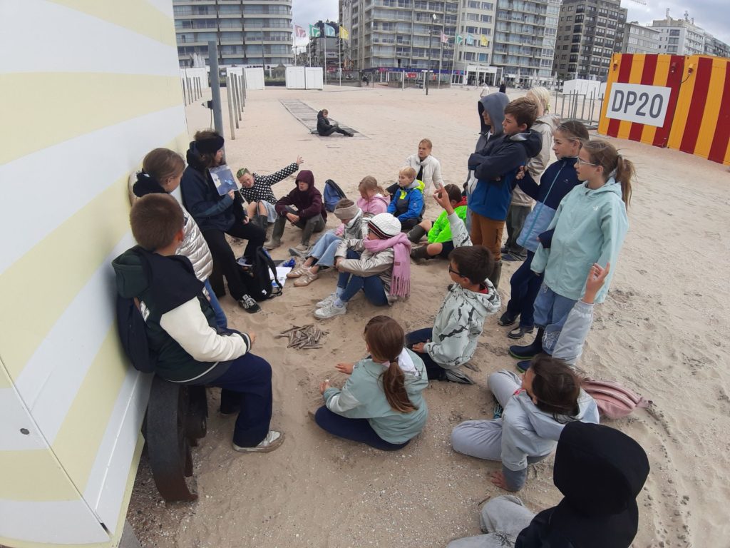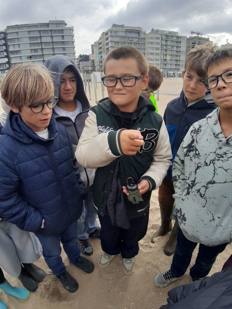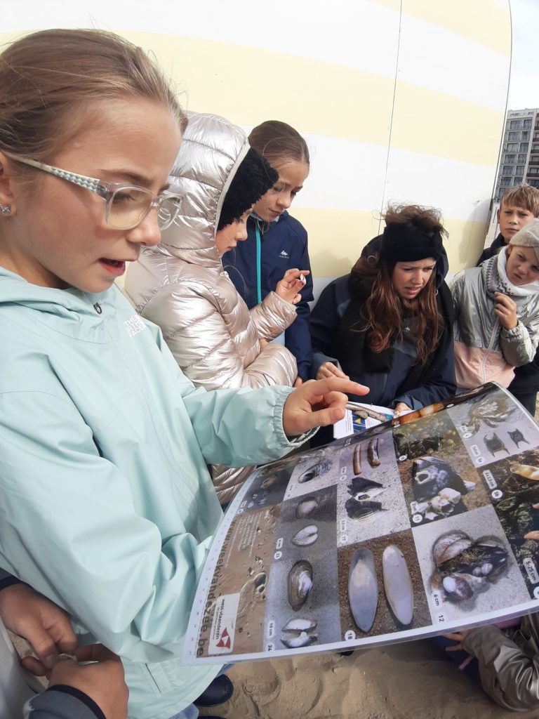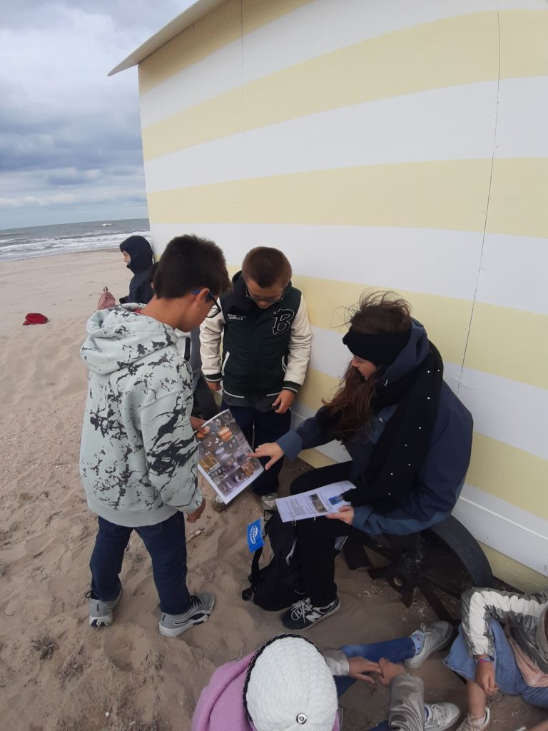L’après-midi, direction la plage de La Panne pour un jeu sur la thématique de la mer (animaux de la mer, vocabulaire spécifique, utilisation d’un outil de détermination des coquillages, création d’une rose des vents, etc.).