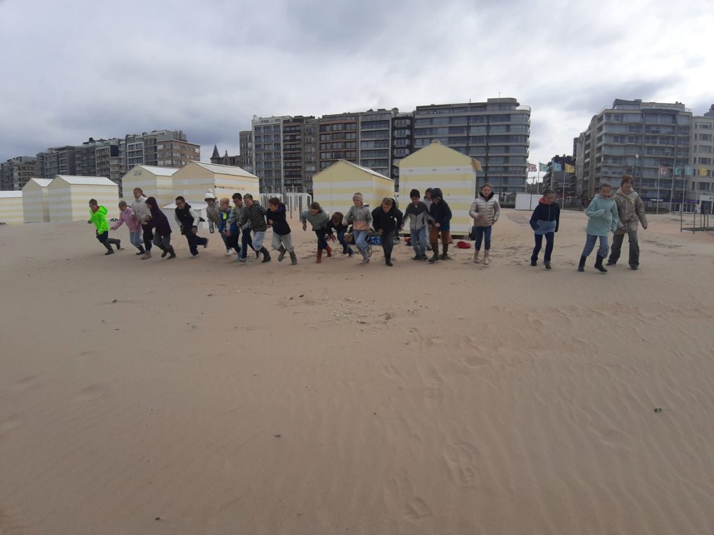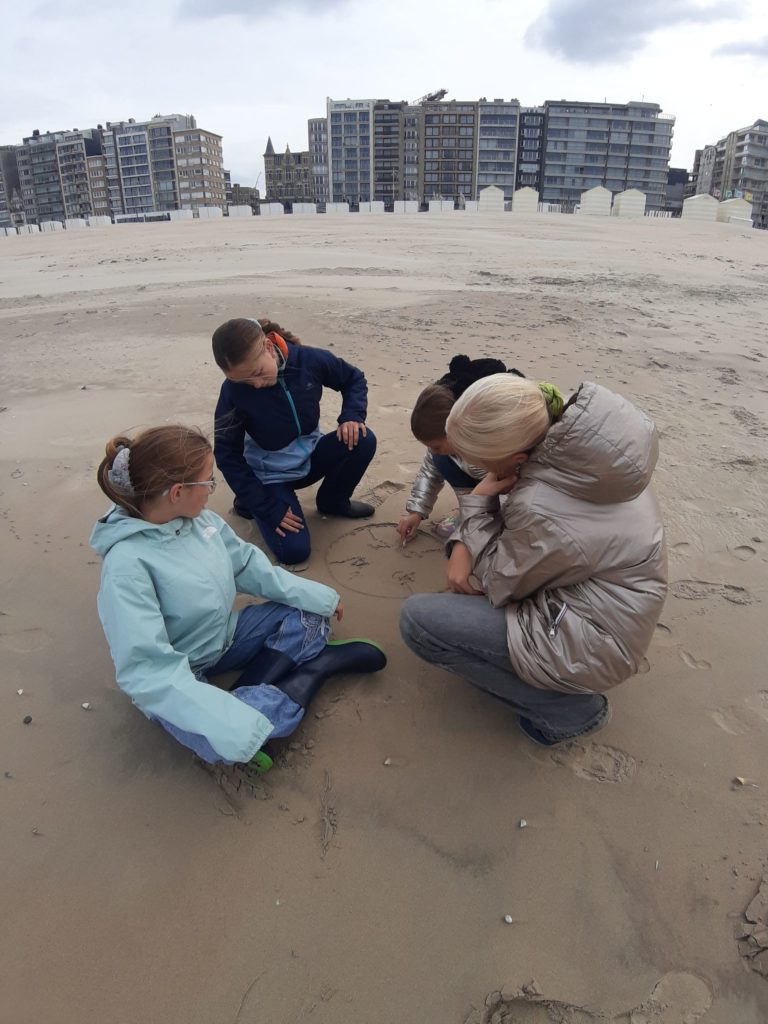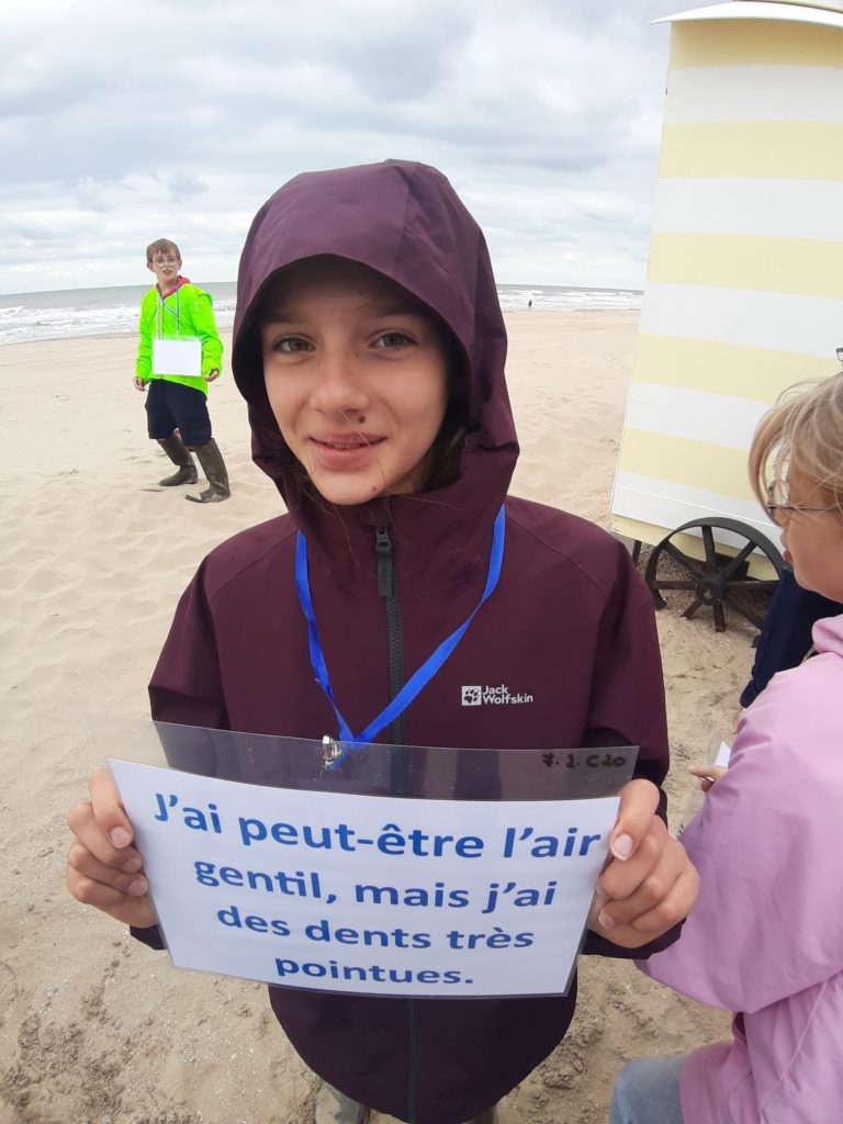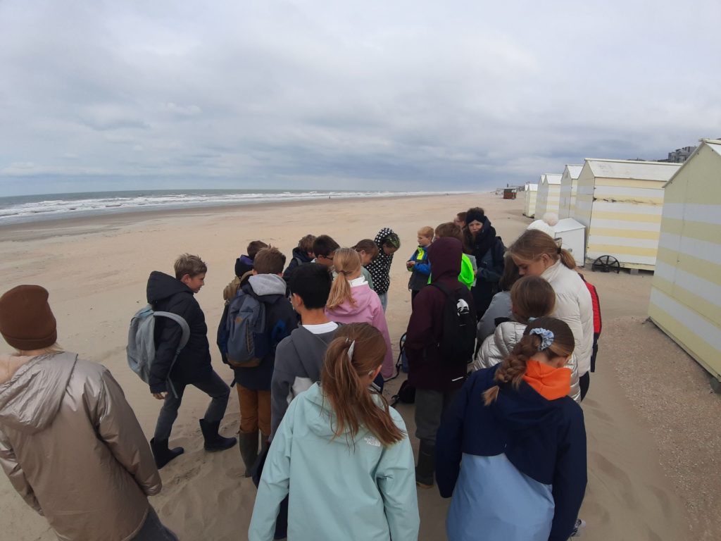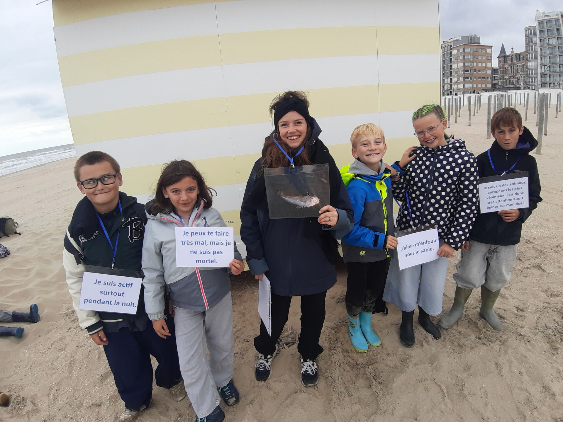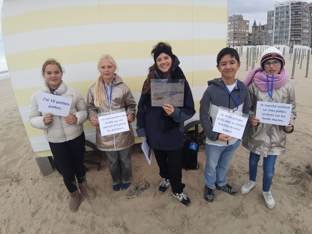 L’après-midi, direction la plage de La Panne pour un jeu sur la thématique de la mer (animaux de la mer, vocabulaire spécifique, utilisation d’un outil de détermination des coquillages, création d’une rose des vents, etc.).