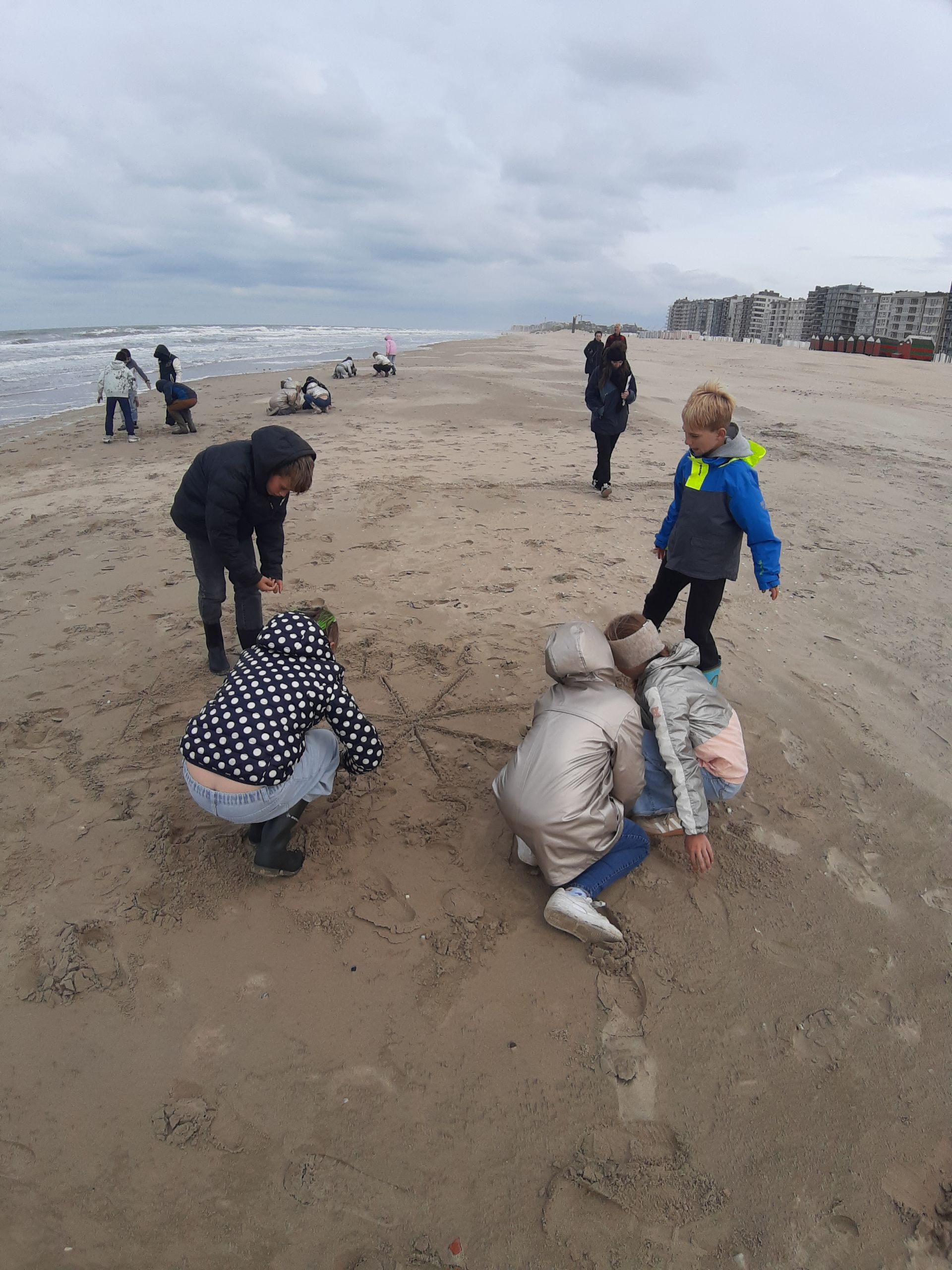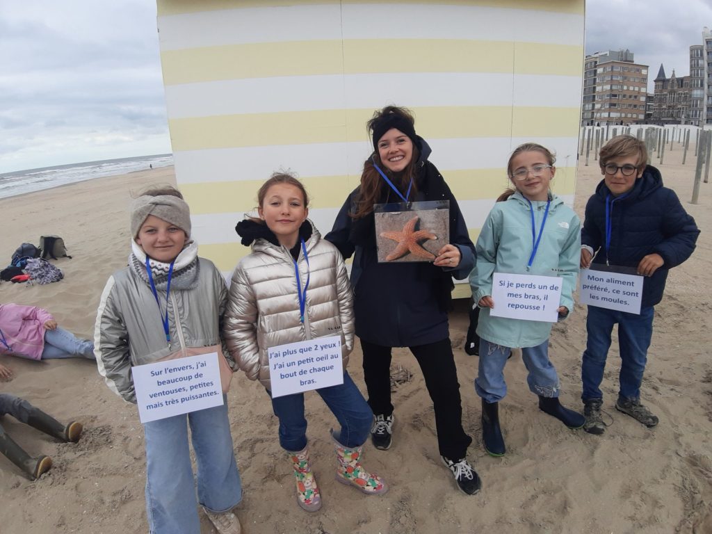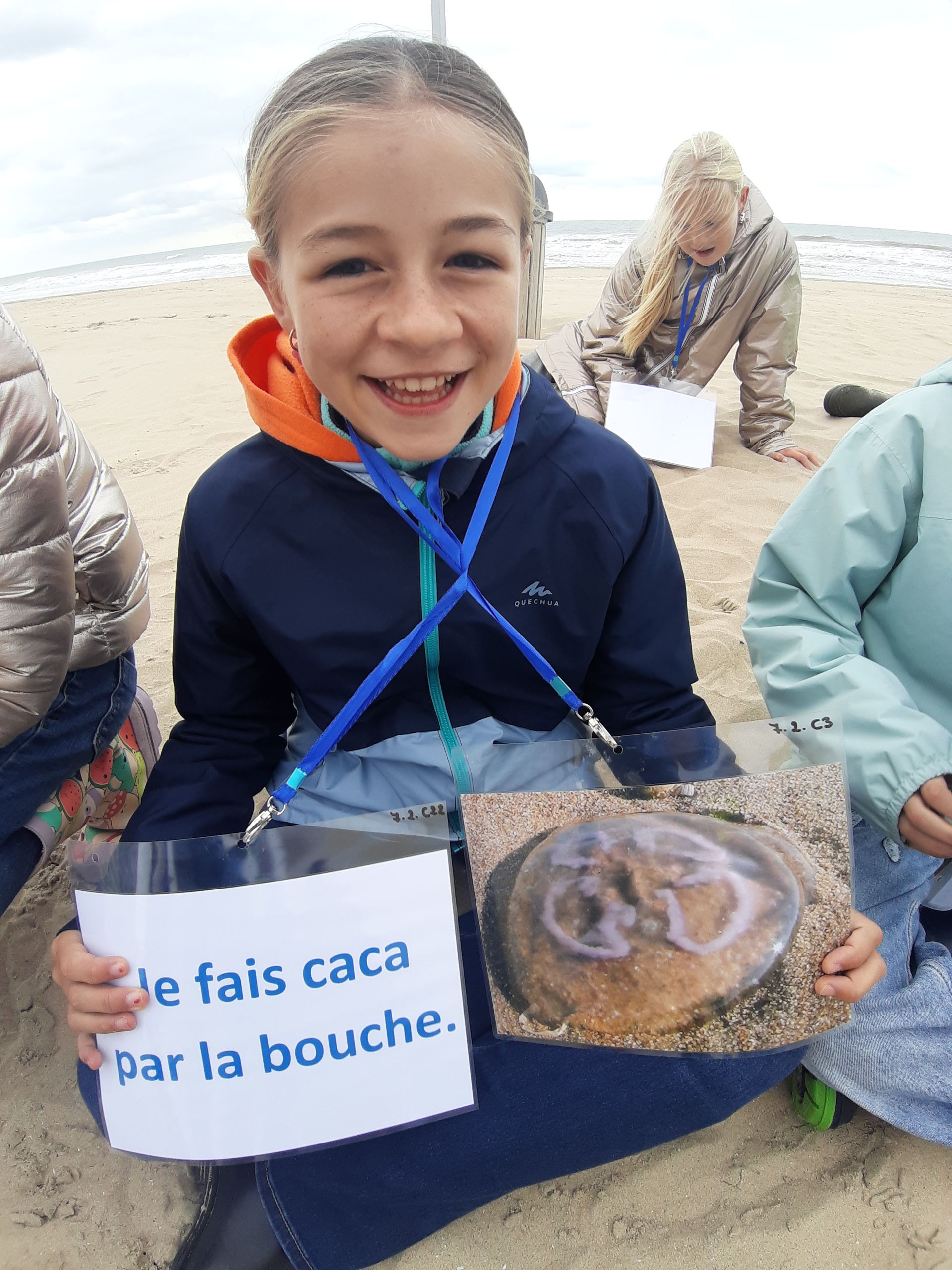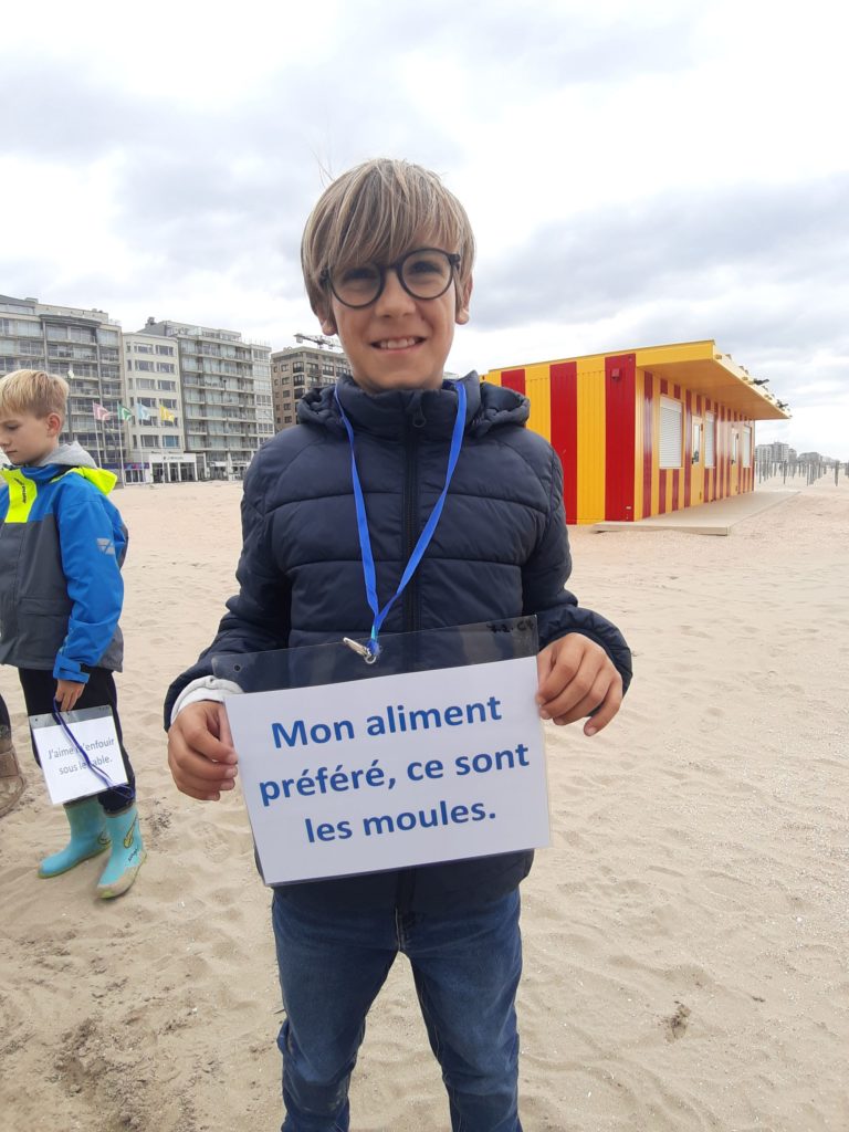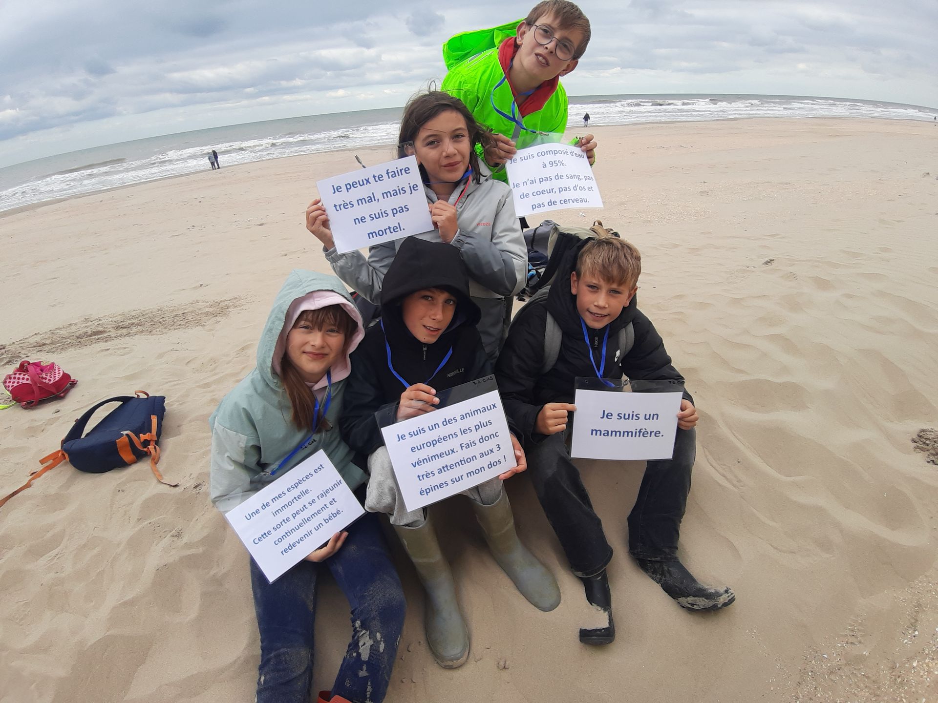 L’après-midi, direction la plage de La Panne pour un jeu sur la thématique de la mer (animaux de la mer, vocabulaire spécifique, utilisation d’un outil de détermination des coquillages, création d’une rose des vents, etc.).