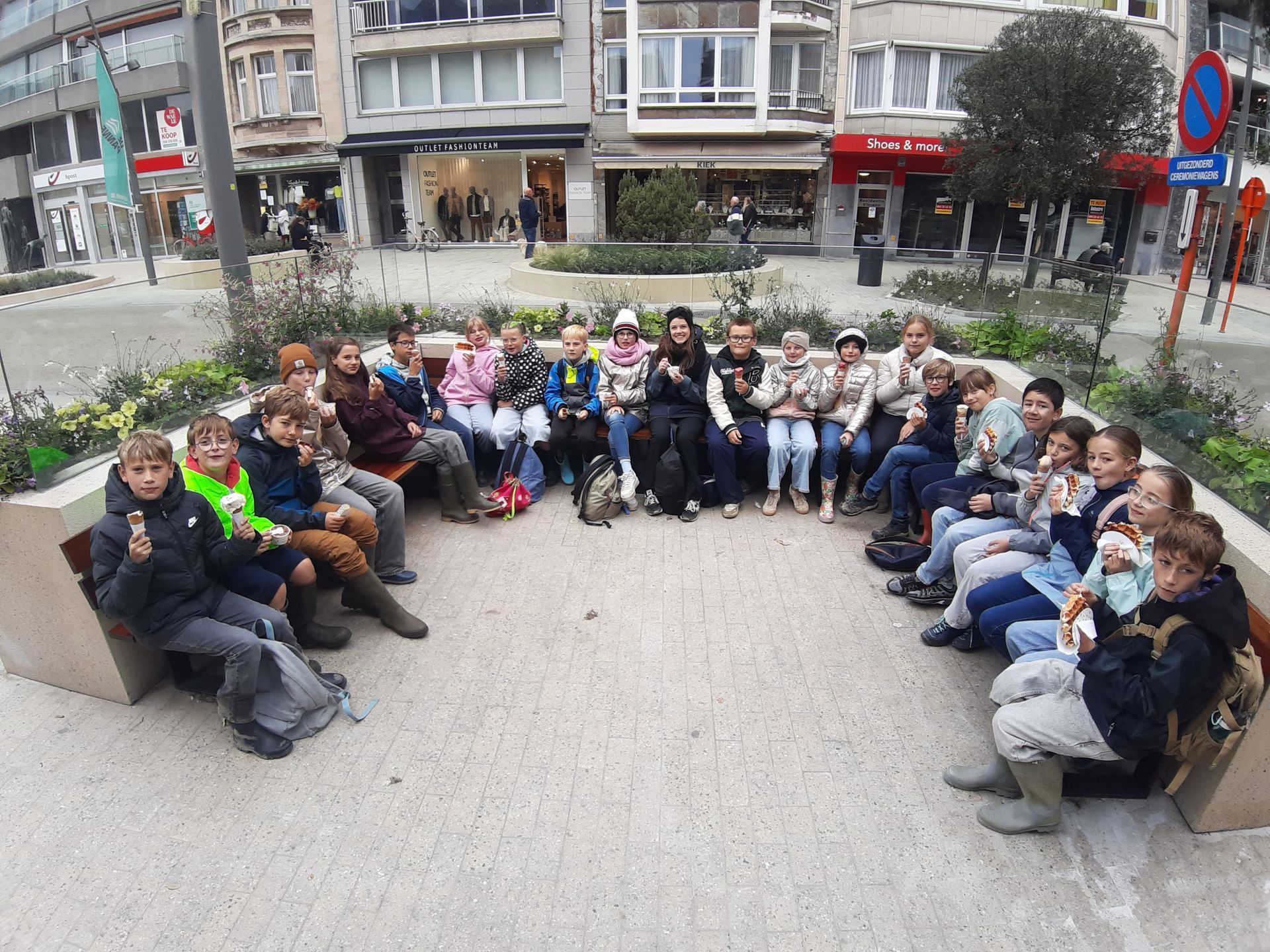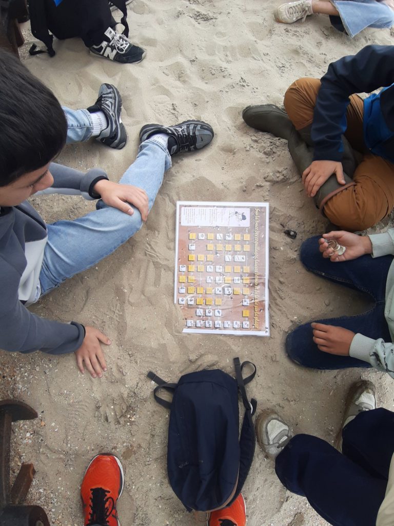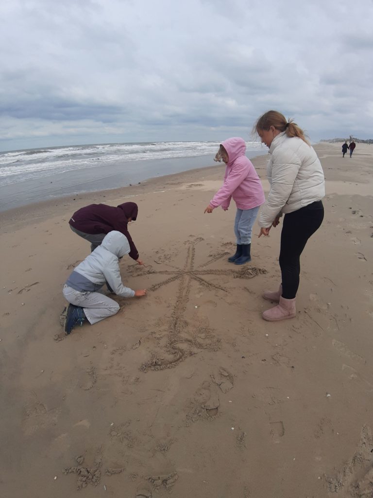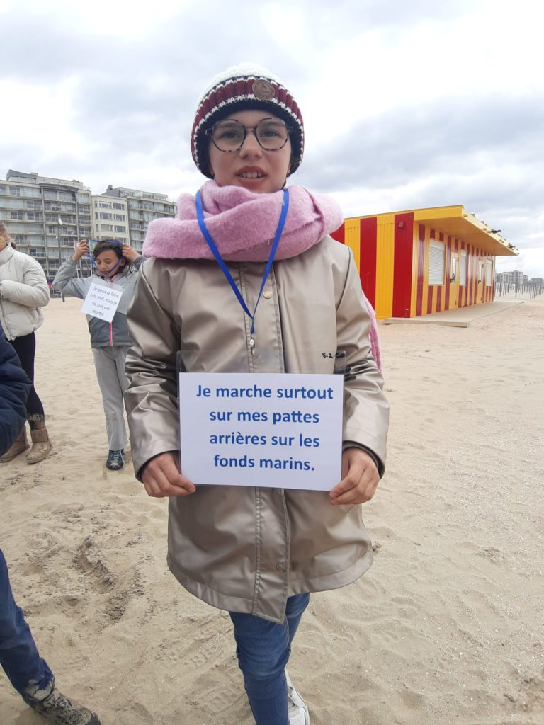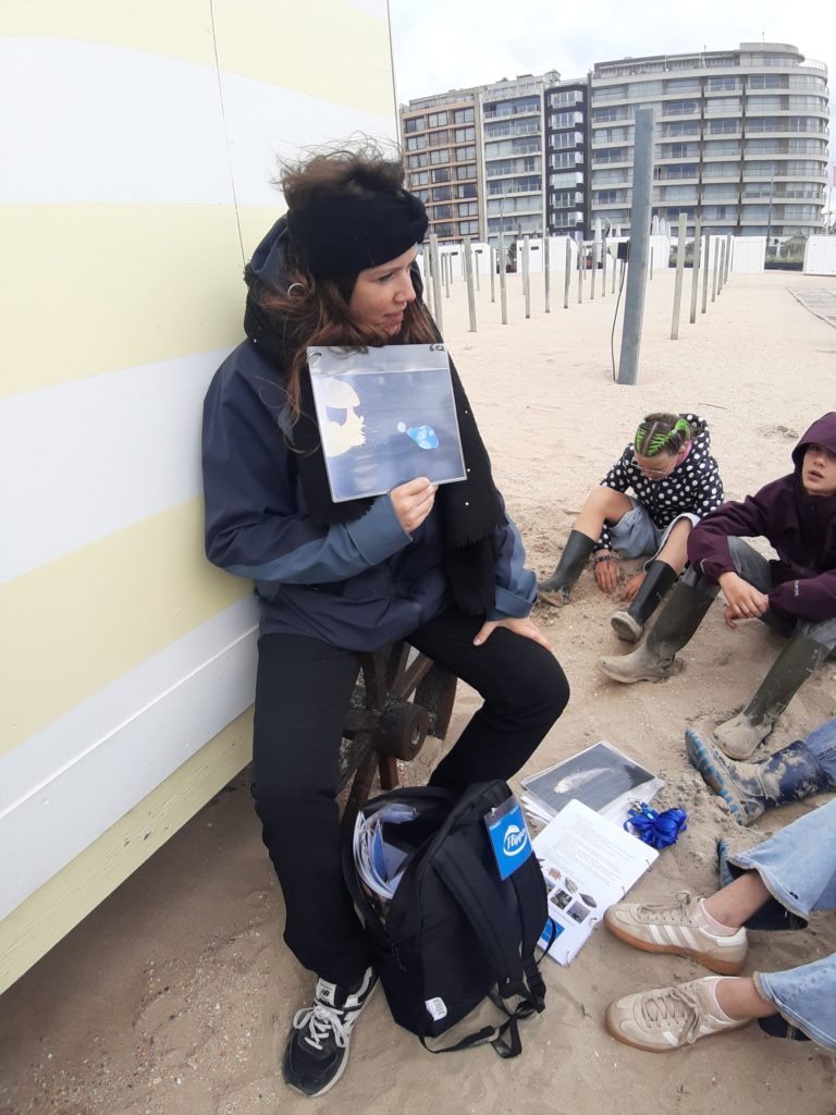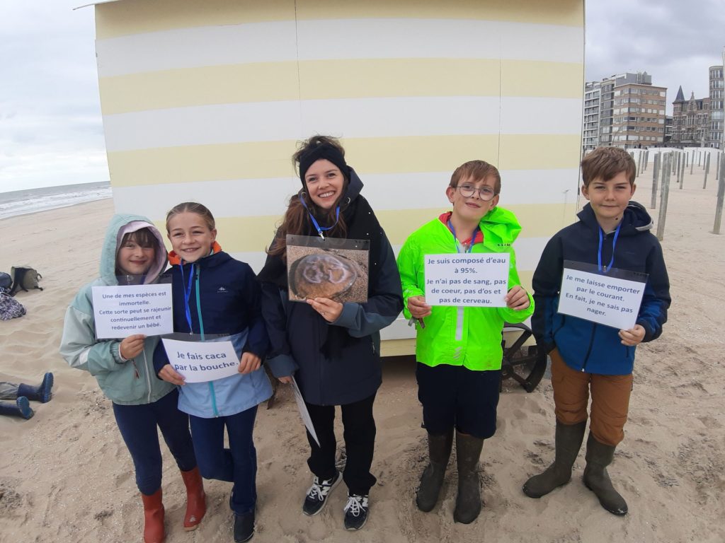 L’après-midi, direction la plage de La Panne pour un jeu sur la thématique de la mer (animaux de la mer, vocabulaire spécifique, utilisation d’un outil de détermination des coquillages, création d’une rose des vents, etc.).