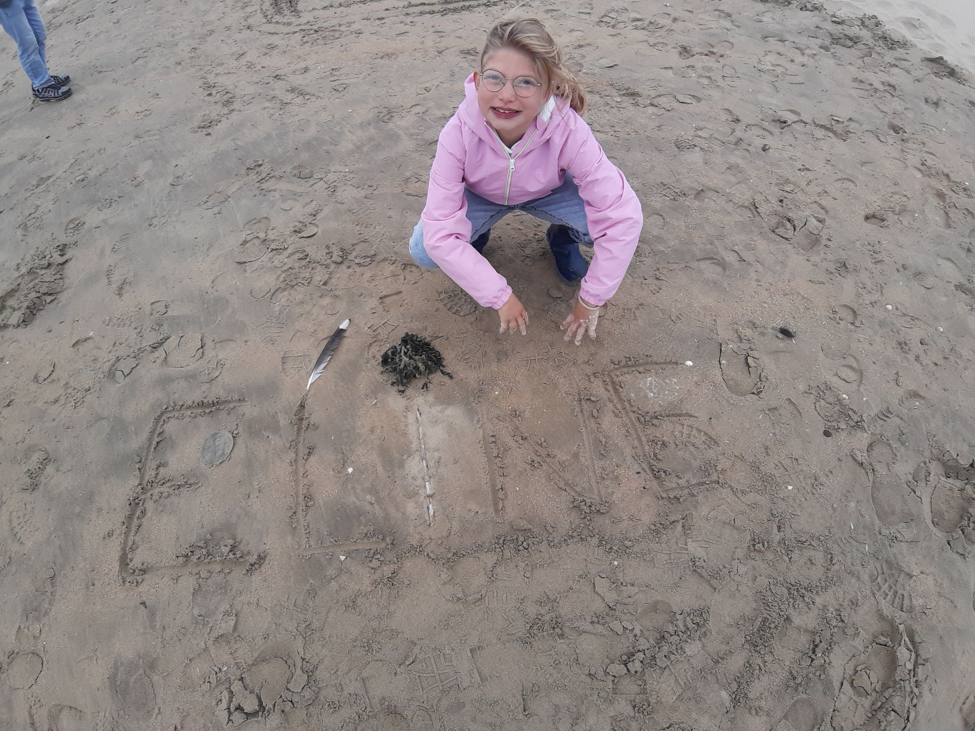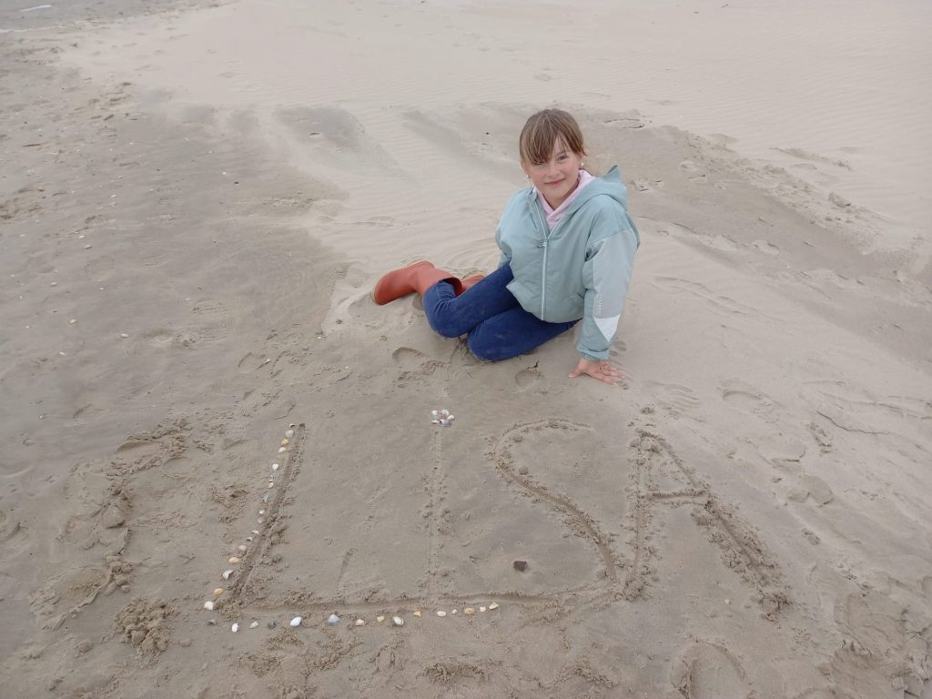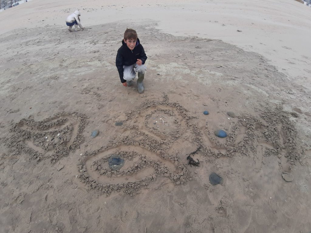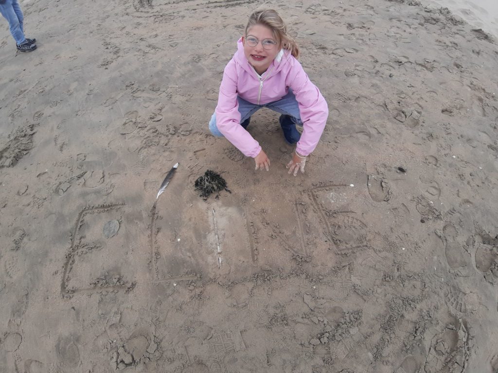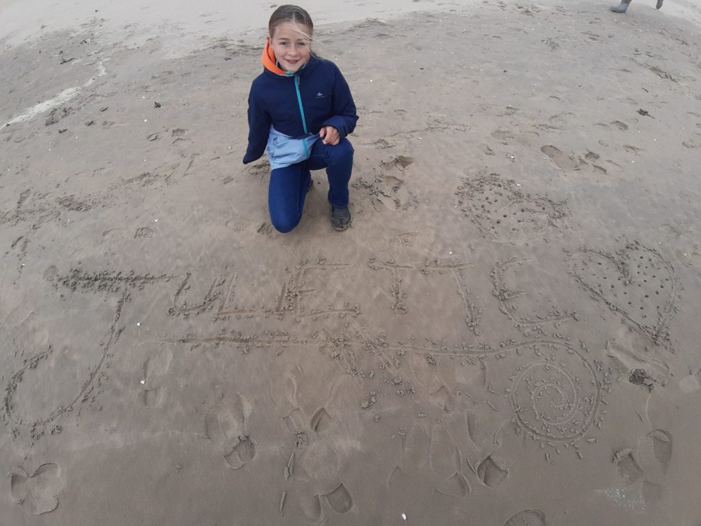 Après ce jeu bien sympa, les enfants ont pris le temps d’écrire leur prénom sur la plage…