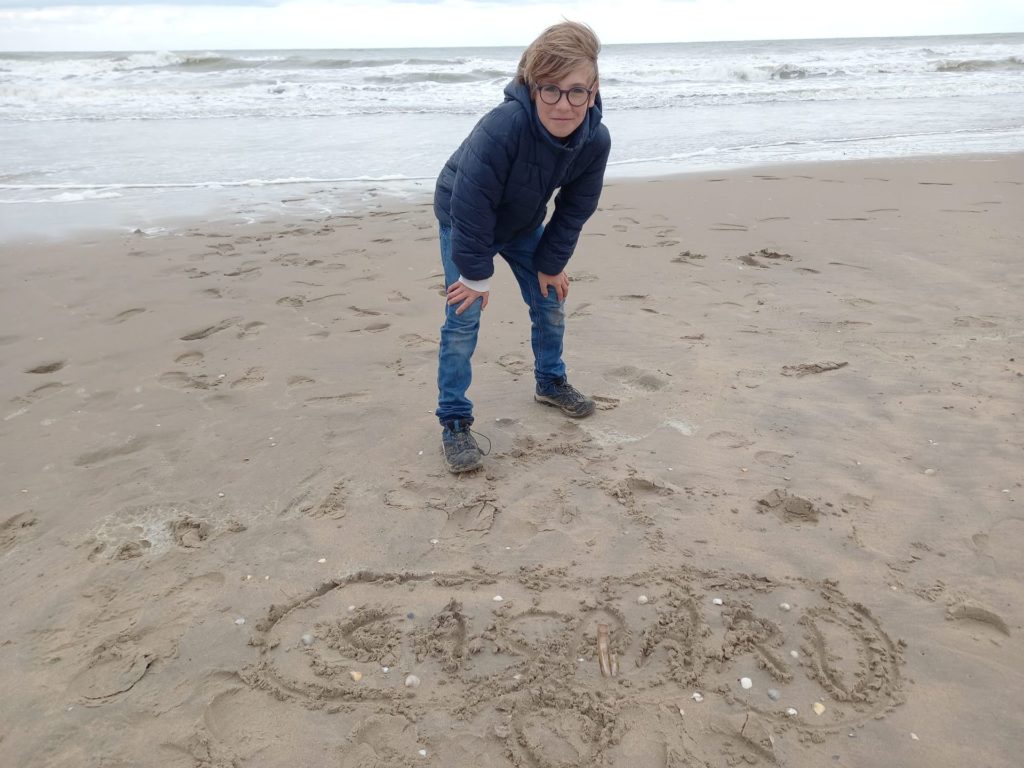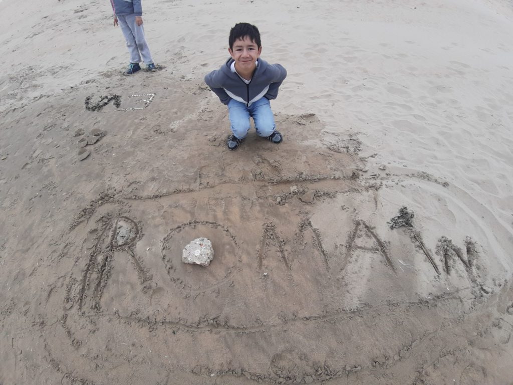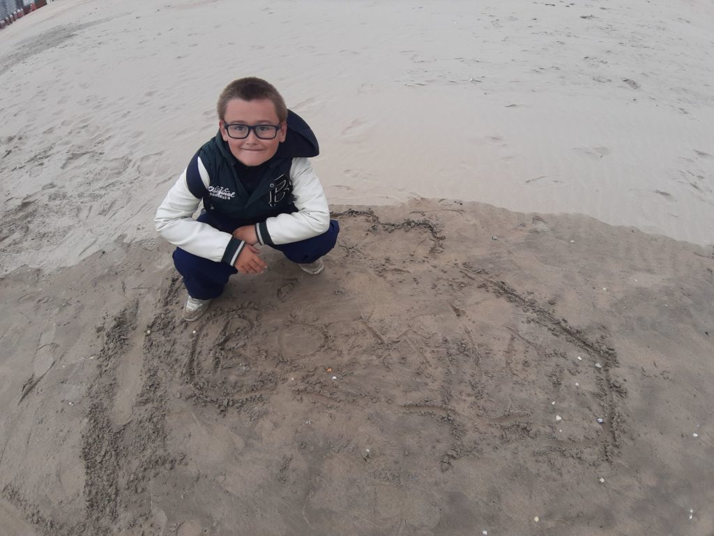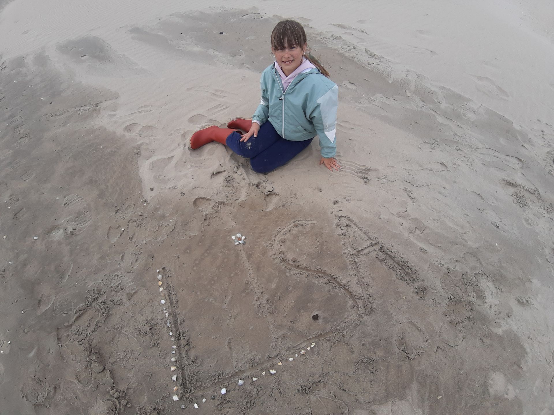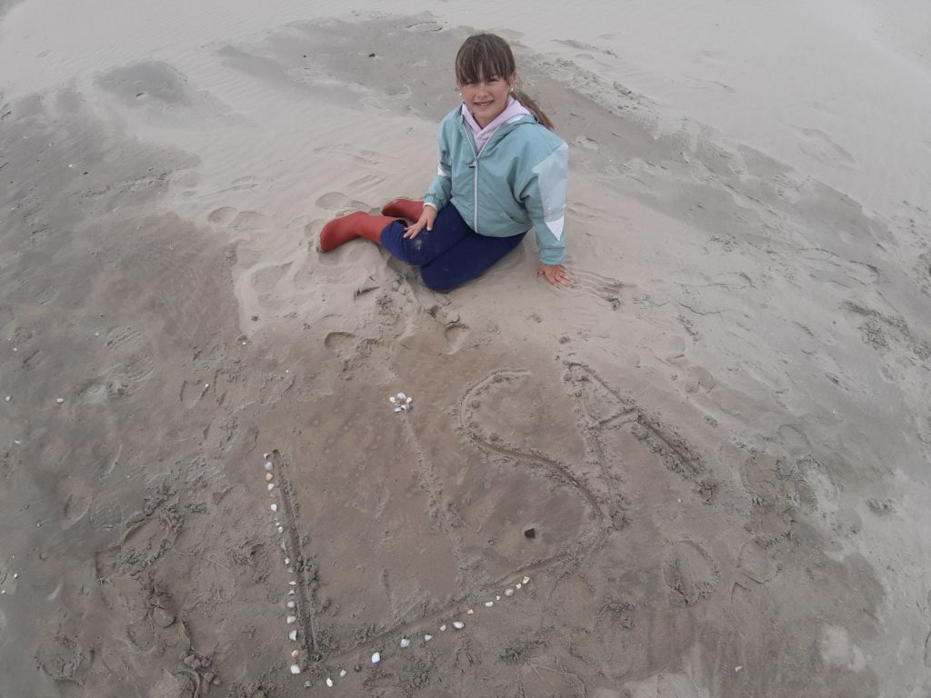 Après ce jeu bien sympa, les enfants ont pris le temps d’écrire leur prénom sur la plage…
