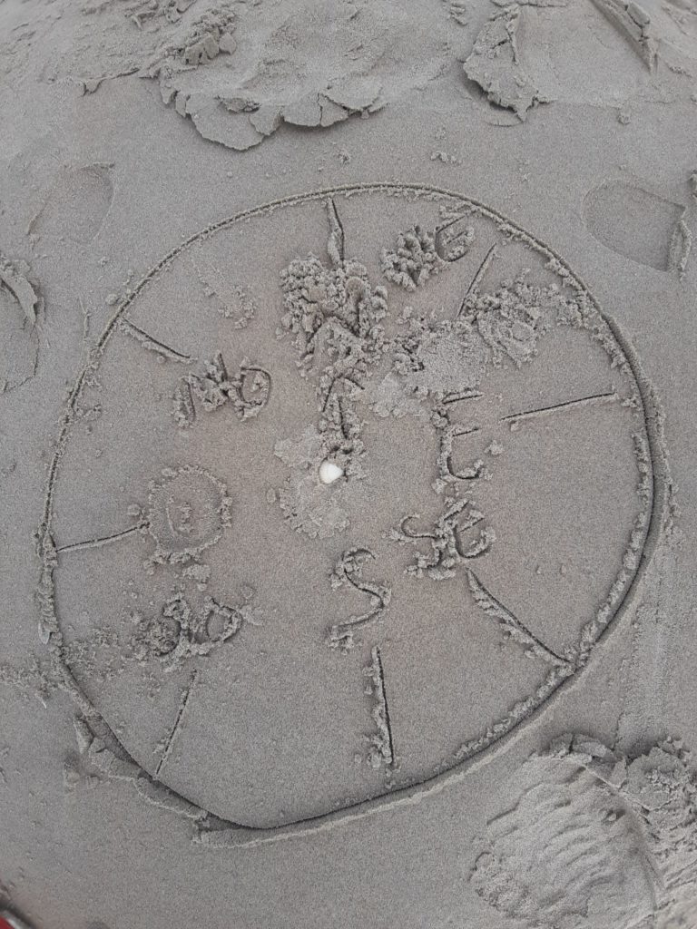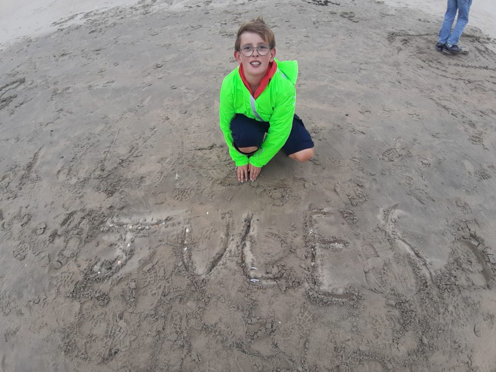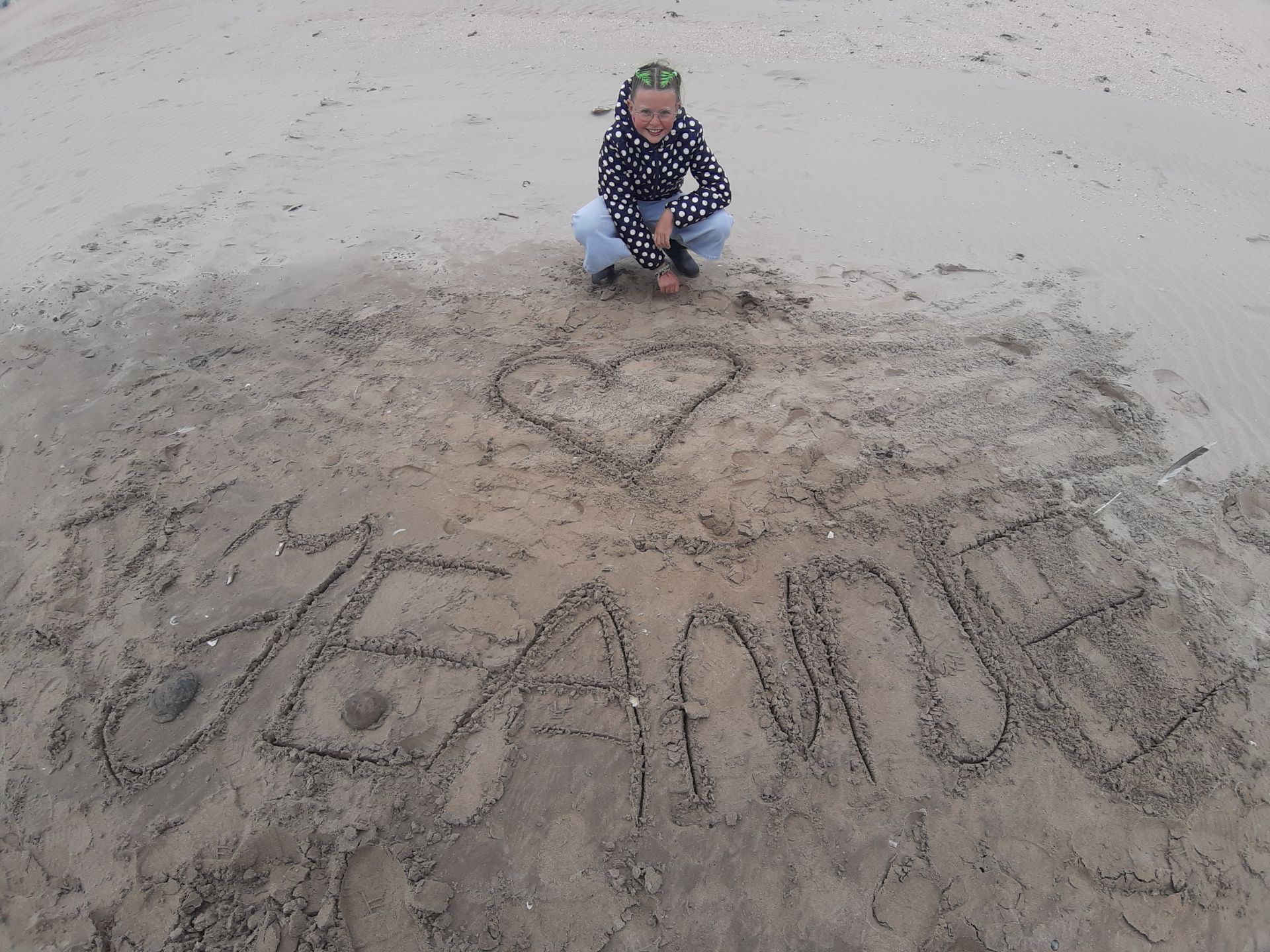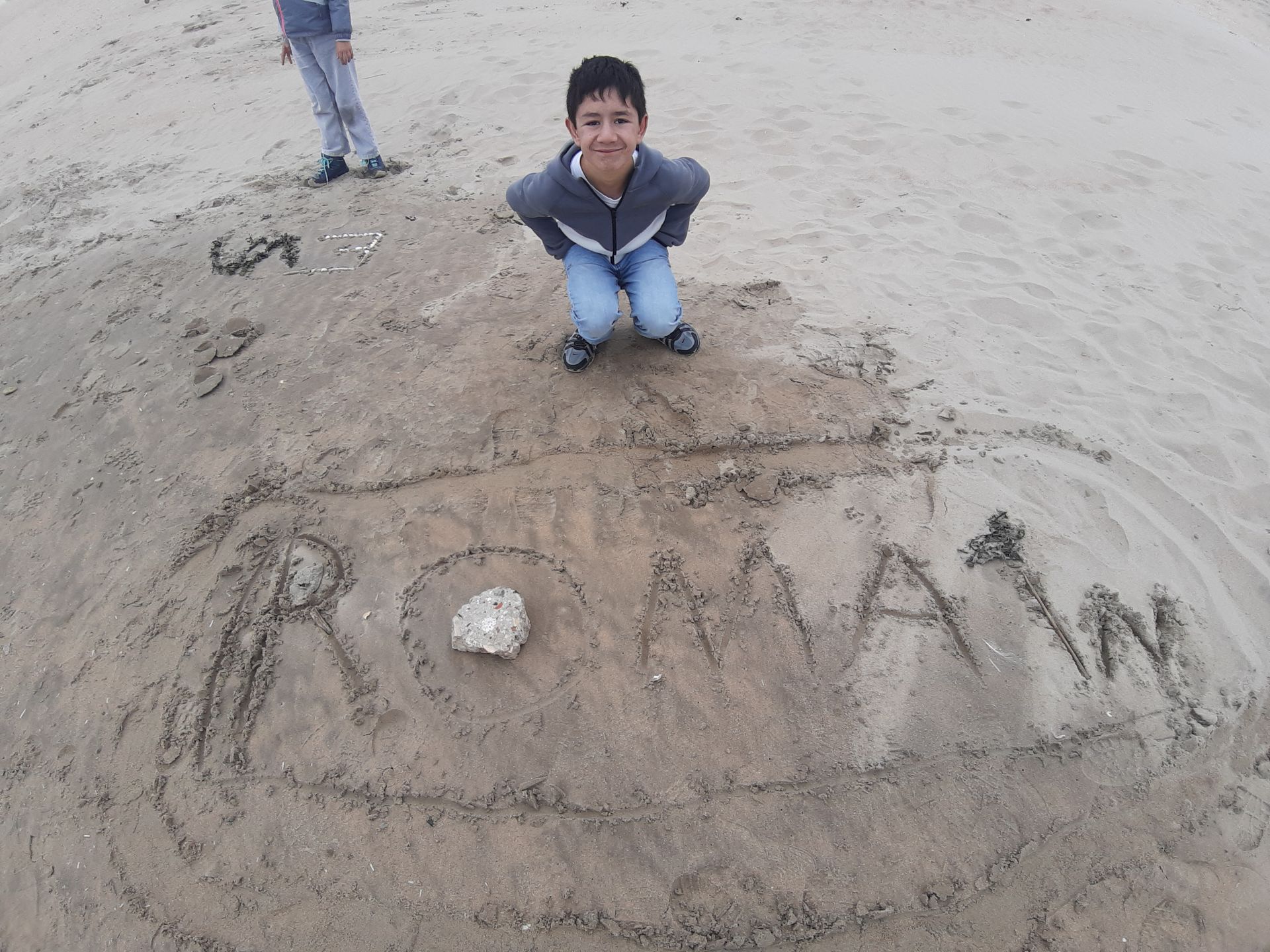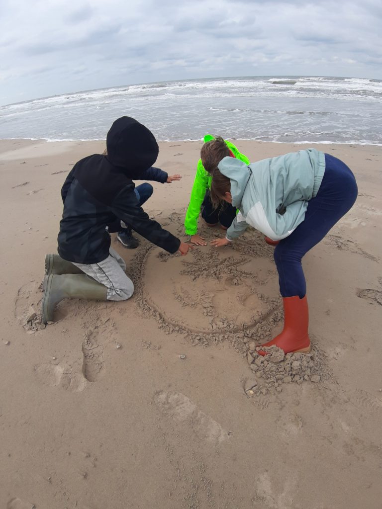 Après ce jeu bien sympa, les enfants ont pris le temps d’écrire leur prénom sur la plage…