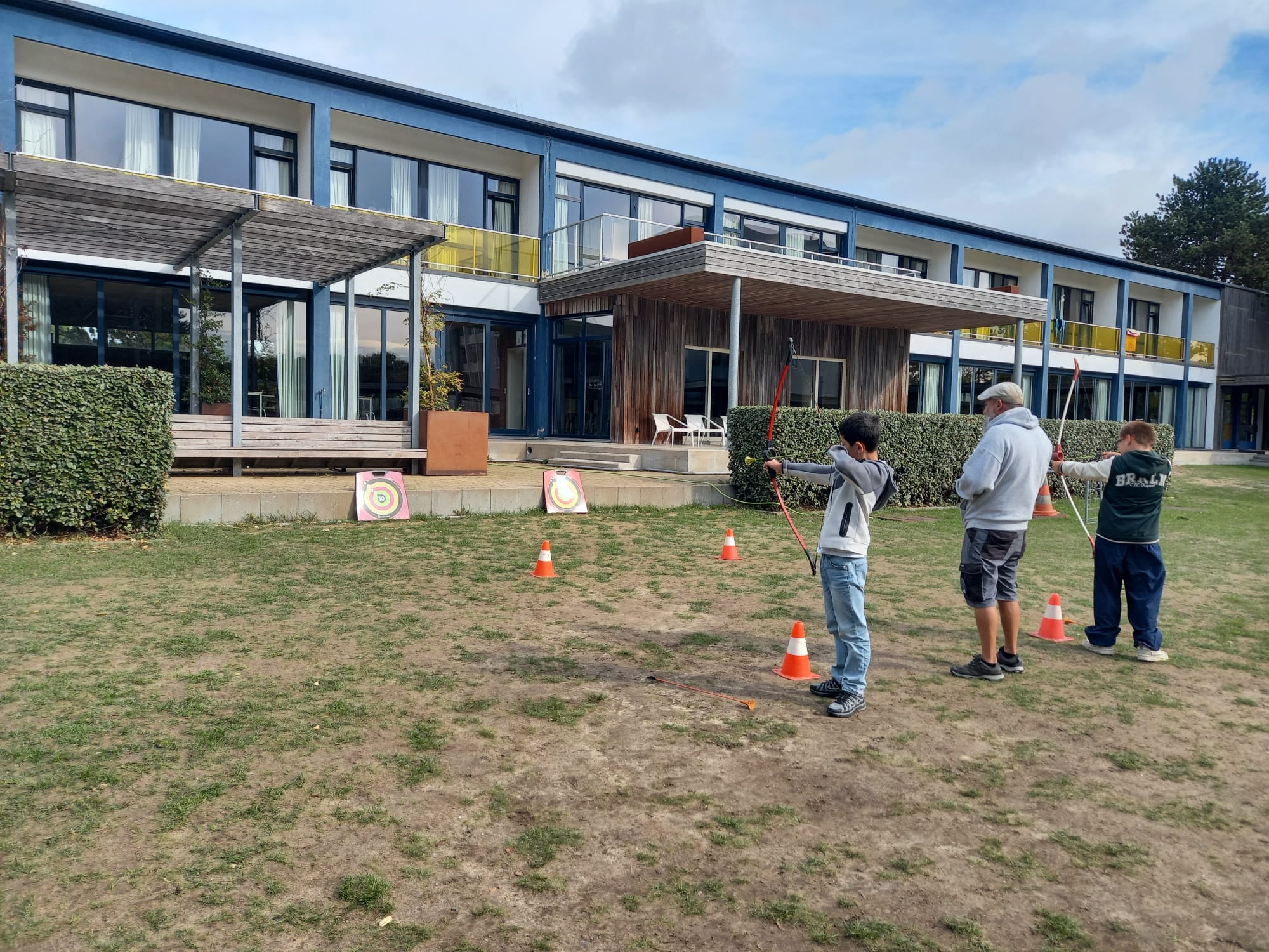 La journée de ce jeudi 25 septembre 2025 a débuté par un tournoi d’épreuves sportives qui a permis aux enfants de s’affronter au tir à la corde, au lancer de tronc et de pneu, au tir à l’arc, etc.