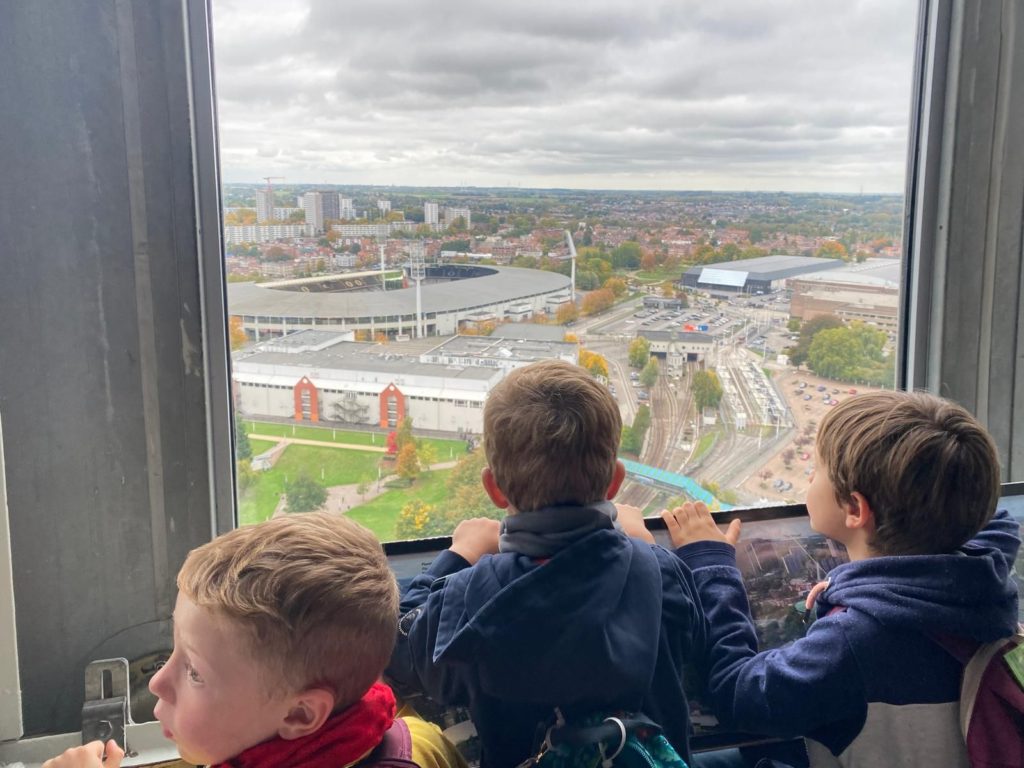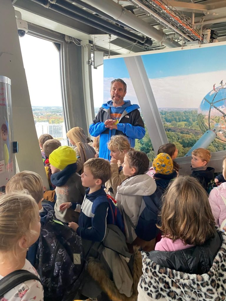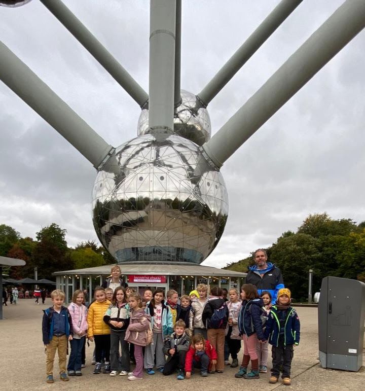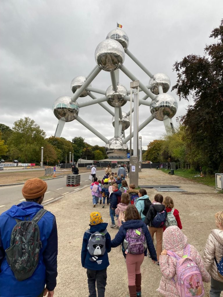 Durant l’après-midi, les P1-2 se sont rendus sur le plateau du Heysel afin de visiter l’Atomium : vue imprenable, observation du relief, recherche des monuments et bâtiments principaux de Bruxelles (stade Roi Baudouin, Palais de Justice, quartier administratif de la gare du Nord, aéroport de Bruxelles National, etc.). Cette exploration en hauteur leur a permis de mieux comprendre la géographie urbaine de la capitale, tout en s’amusant à repérer les lieux emblématiques. À l’intérieur des sphères, ils ont découvert des expositions sur l’histoire de l’Expo 58, l’architecture futuriste de l’édifice, et les sciences qui ont inspiré sa conception. La visite s’est conclue par un moment de détente dans les espaces interactifs.