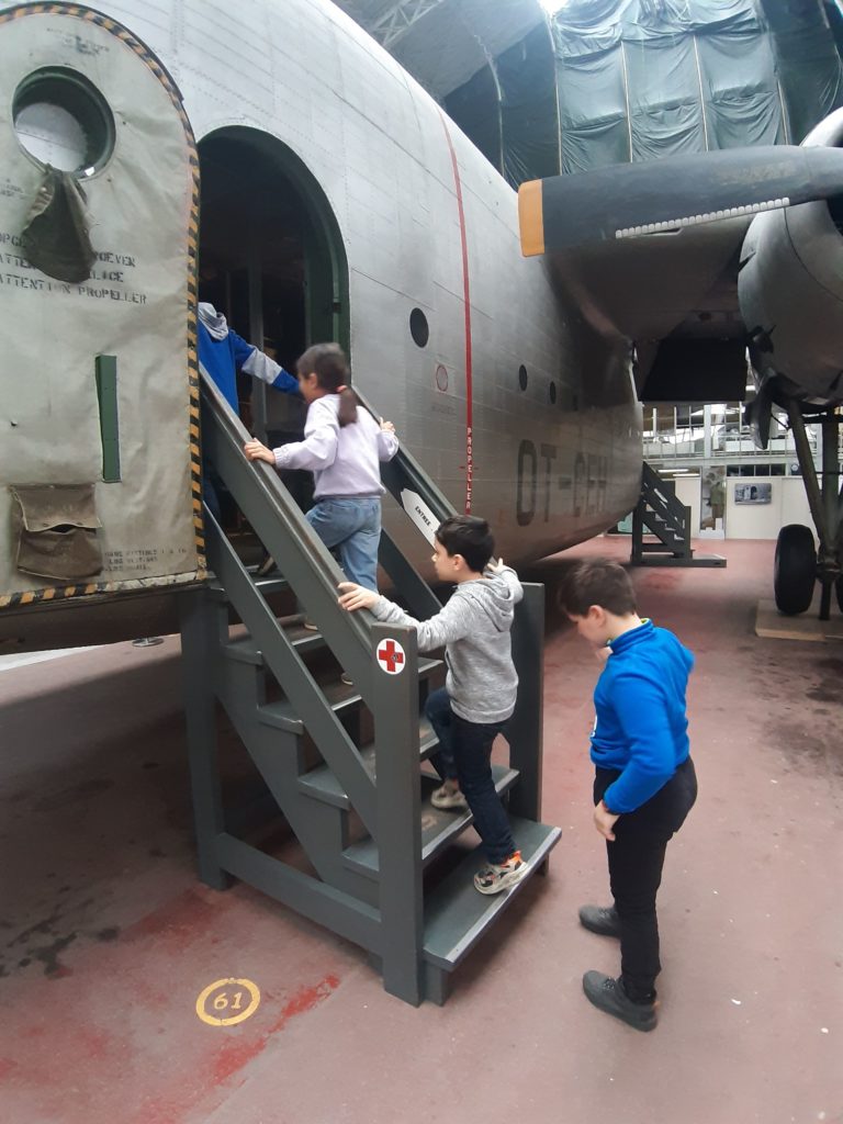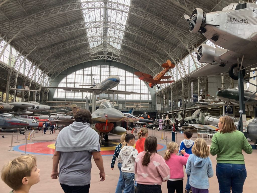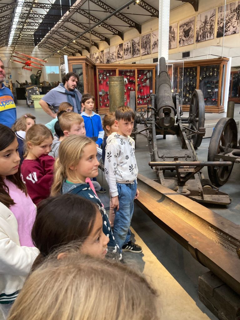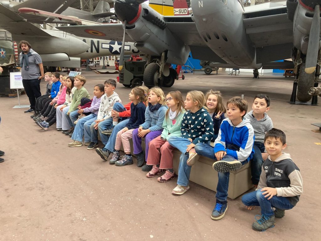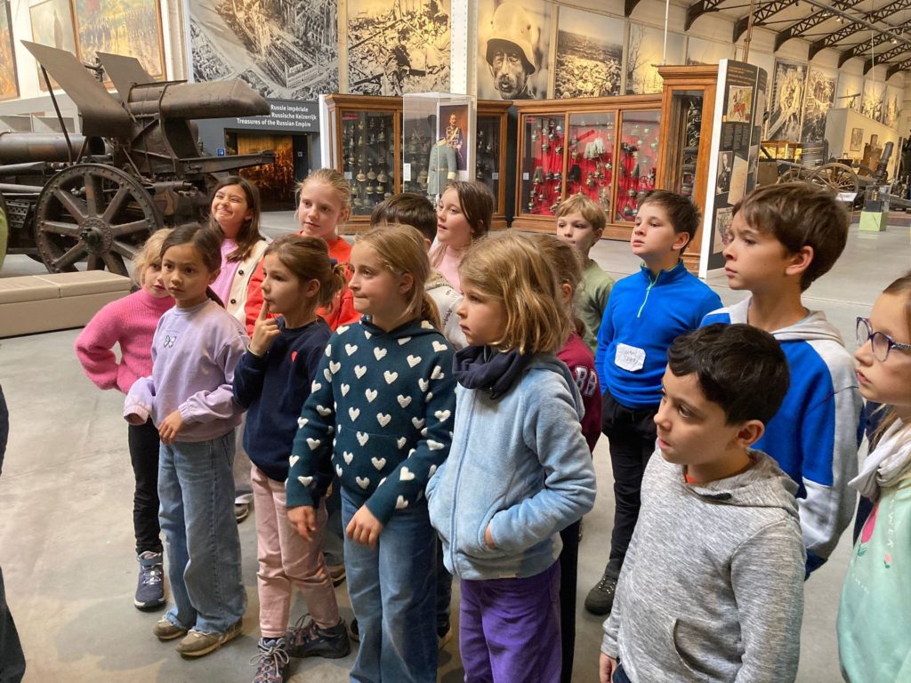 Quant aux élèves de P3-4, ils ont mis le cap sur le site du Cinquantenaire et le Musée de l’armée. En explorant les galeries de ce vaste endroit, ils ont pu observer l’évolution des armements, des armures médiévales aux uniformes modernes, en passant par les canons, les chars et les objets du quotidien des soldats. Le gigantesque hangar de l’aviation, avec ses avions de chasse, ses hélicoptères et ses planeurs, a suscité l’émerveillement de tous.