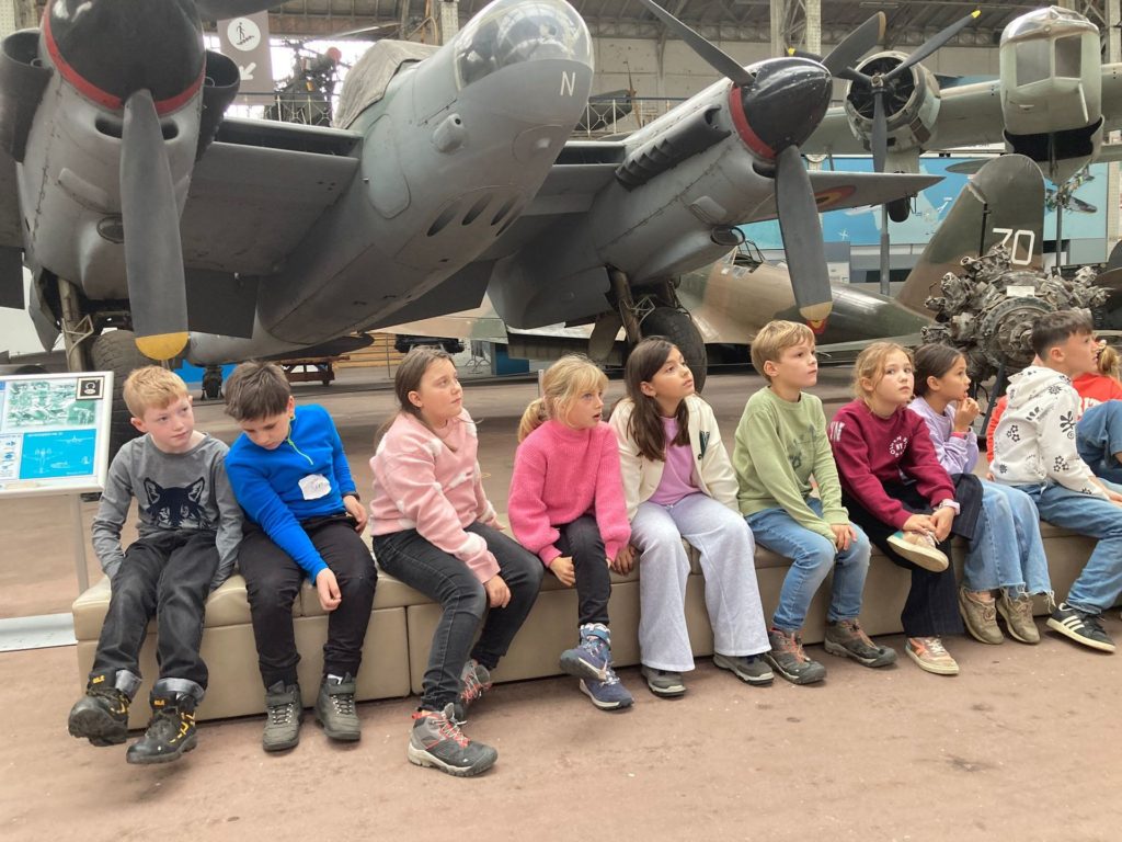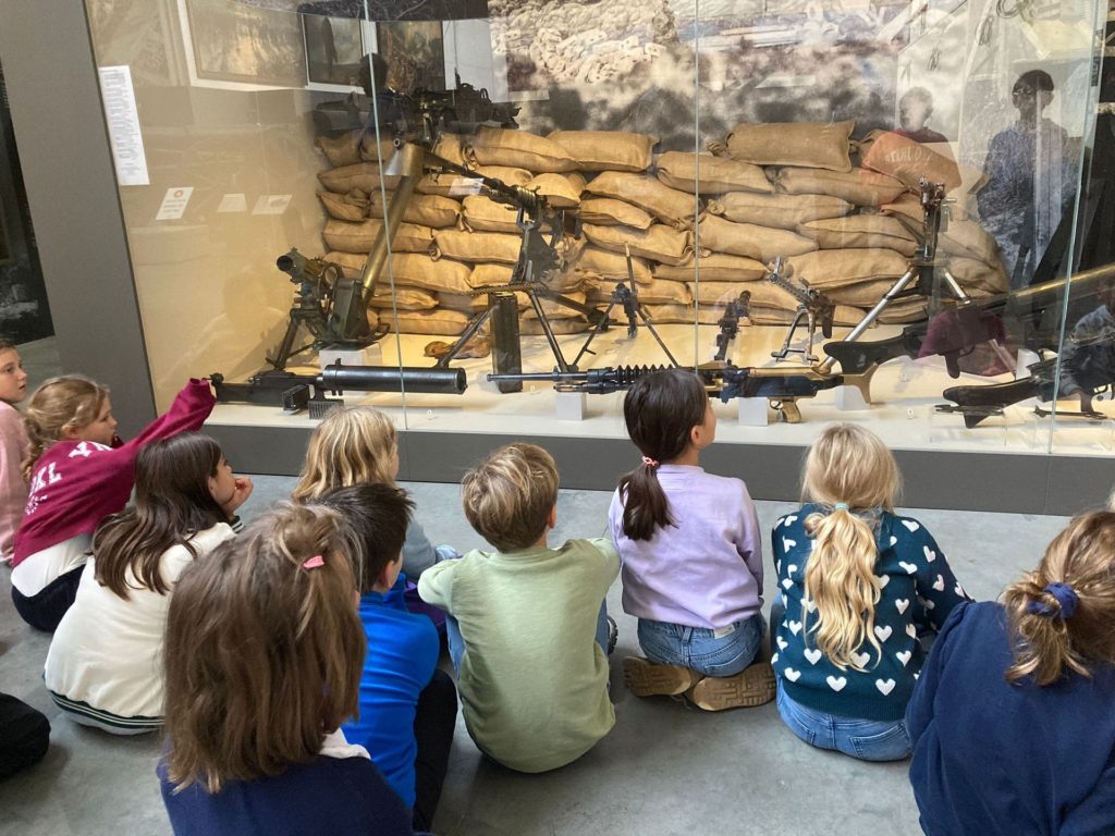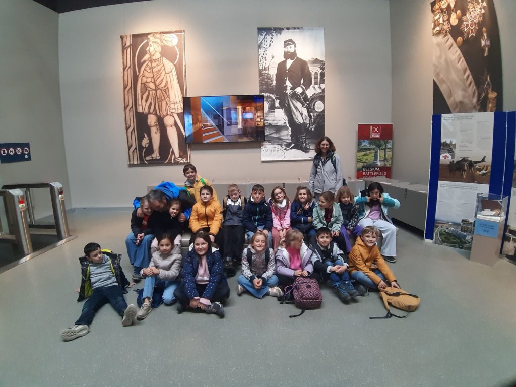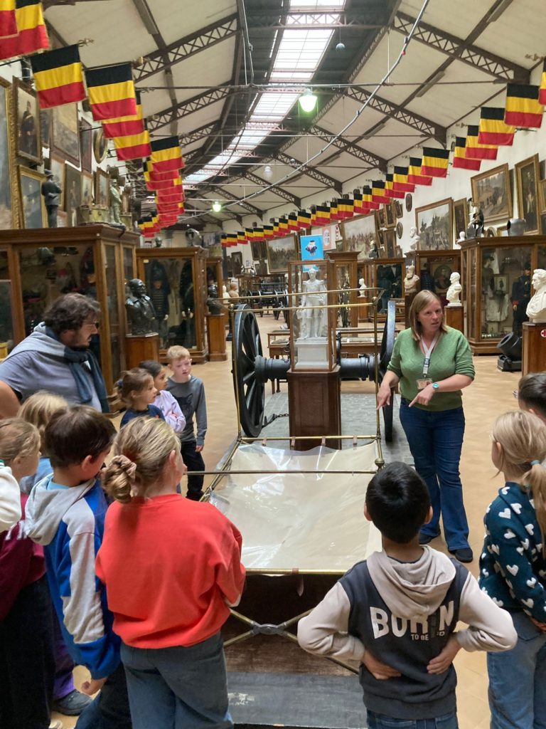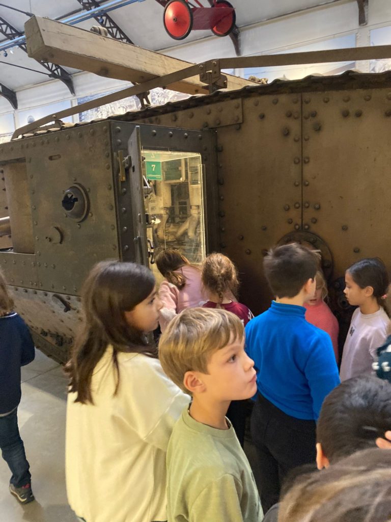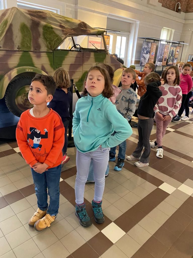 Quant aux élèves de P3-4, ils ont mis le cap sur le site du Cinquantenaire et le Musée de l’armée. En explorant les galeries de ce vaste endroit, ils ont pu observer l’évolution des armements, des armures médiévales aux uniformes modernes, en passant par les canons, les chars et les objets du quotidien des soldats. Le gigantesque hangar de l’aviation, avec ses avions de chasse, ses hélicoptères et ses planeurs, a suscité l’émerveillement de tous.