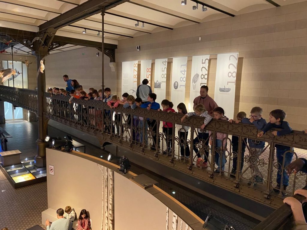 Le clou de la visite fut sans doute la célèbre Galerie des Dinosaures, qui abrite la plus grande collection d’Europe. Les élèves ont pu admirer les impressionnants Iguanodons de Bernissart, découverts en Belgique au XIXe siècle.