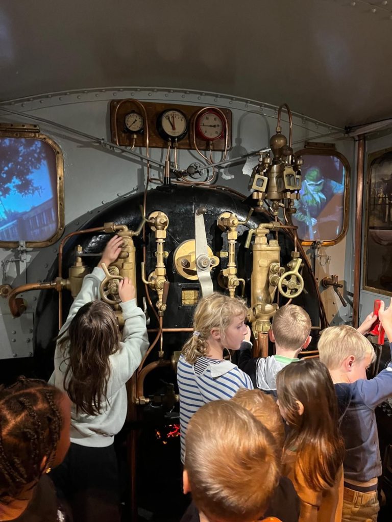 Durant l’après-midi, les élèves de P1-2 ont découvert l’univers fascinant du train à Train World, à Schaerbeek. Ils ont admiré d’anciennes locomotives, exploré des wagons royaux et même testé un simulateur de conduite.