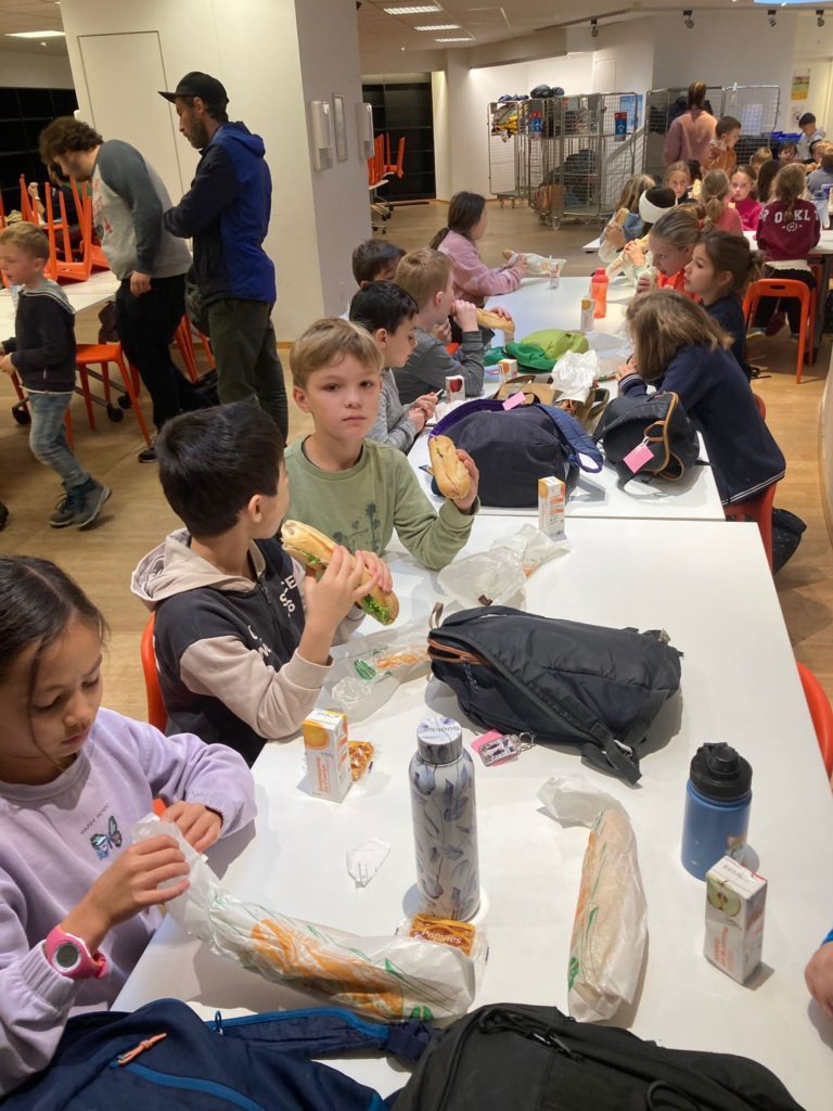 Après une bonne douche bien méritée, les élèves de P4 ont prolongé la magie de la journée par une balade nocturne dans le parc de la Woluwe, entre arbres majestueux et sentiers mystérieux, sous les étoiles du ciel bruxellois. Quant aux plus jeunes, ils ne se sont pas fait prier et se sont endormis bien avant leurs aîné.e.s.