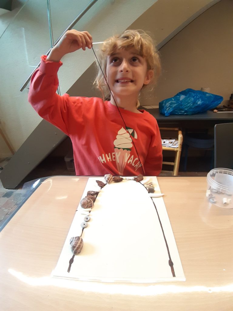 Ensuite, les enfants ont eu l’occasion de confectionner un collier réalisé base de matériaux naturels (coquillage, bois, os, etc.).