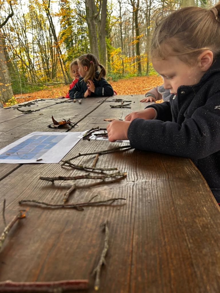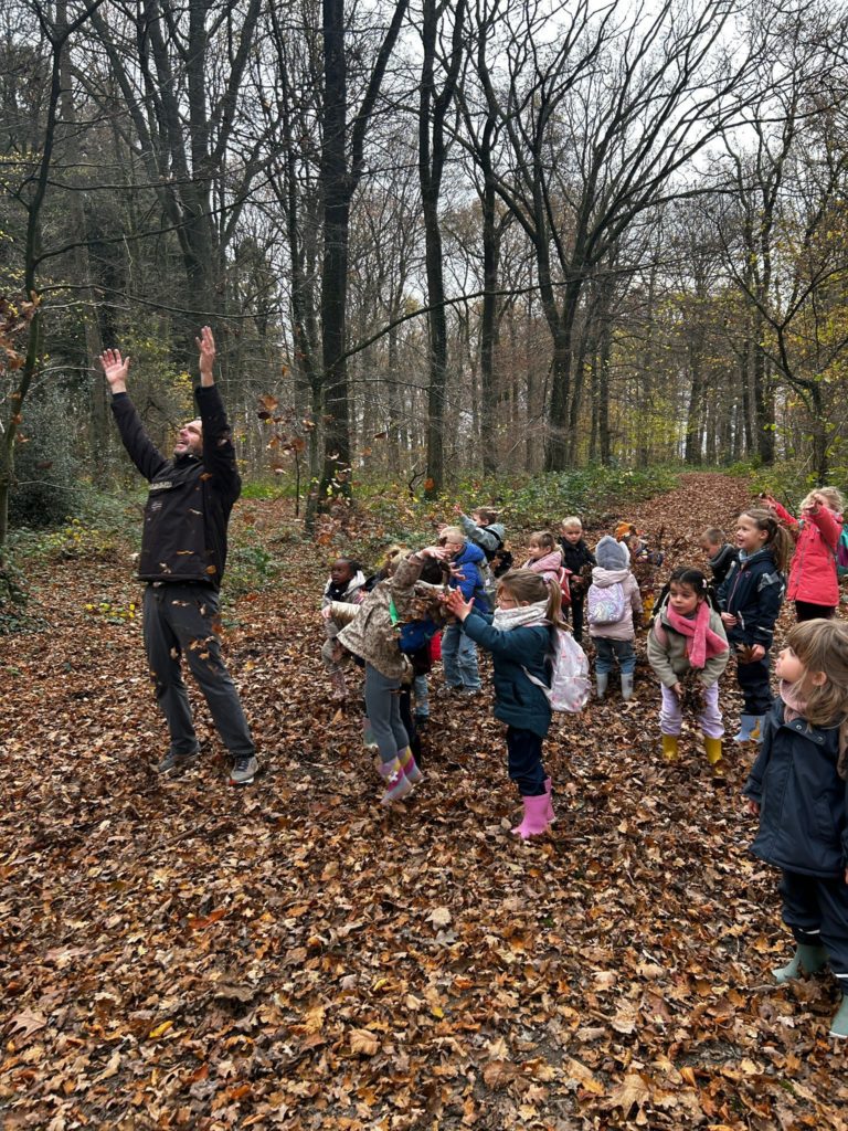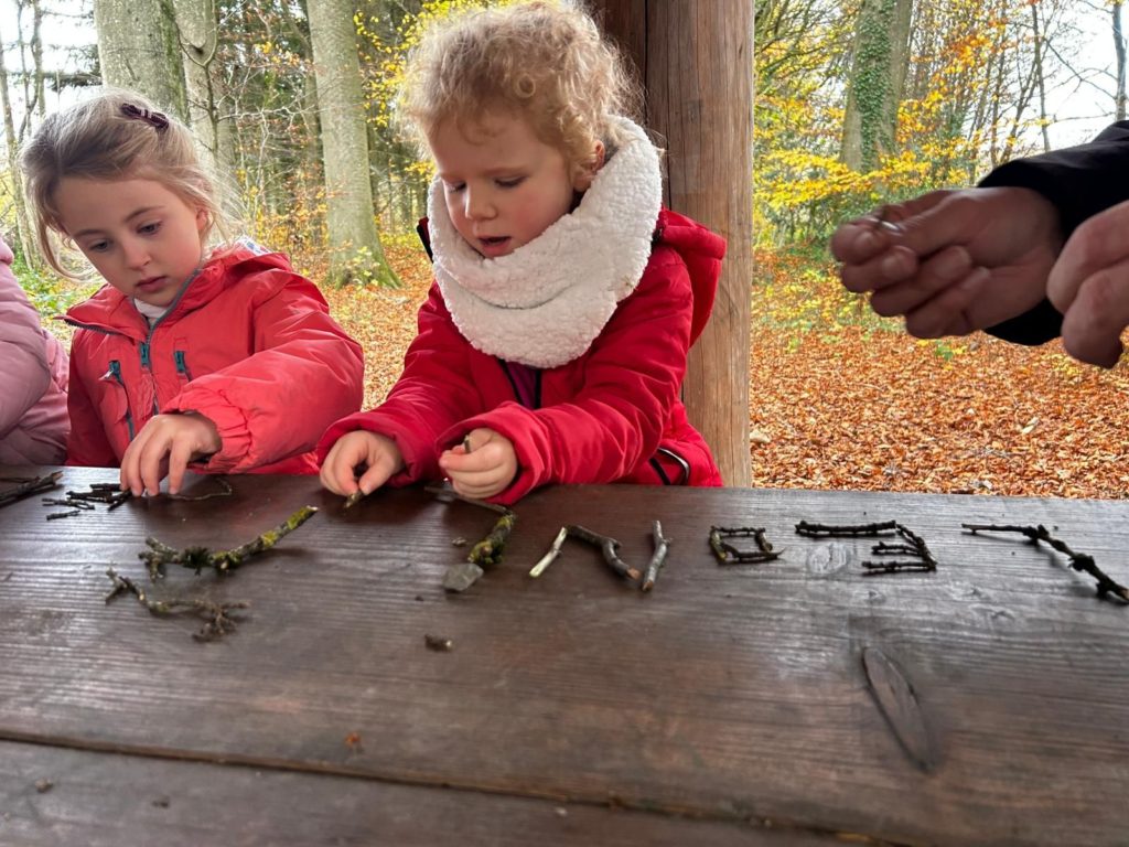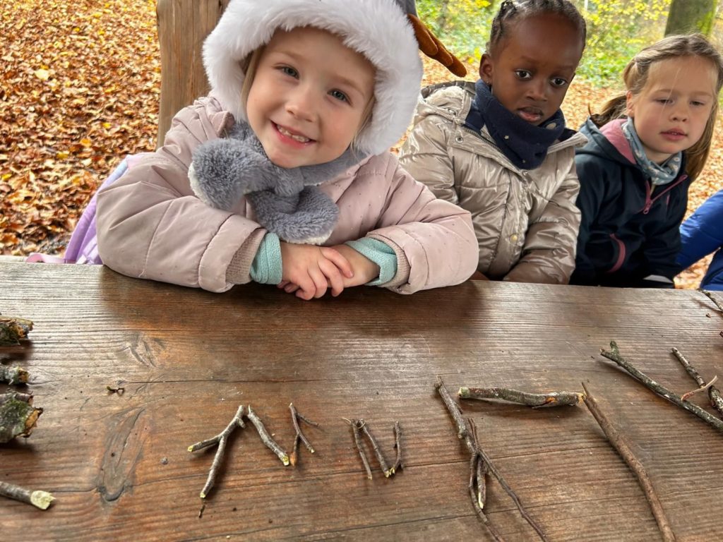 Ce vendredi 14 novembre 2025, les élèves de la classe de Madame Allison (M2-3) ont mis le cap sur le Bois didactique de Gesves pour vivre une expérience originale et ludique. Dans ce cadre naturel, ils ont eu l’occasion de manipuler des morceaux de bois afin de composer leur prénom.