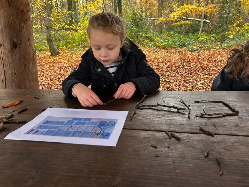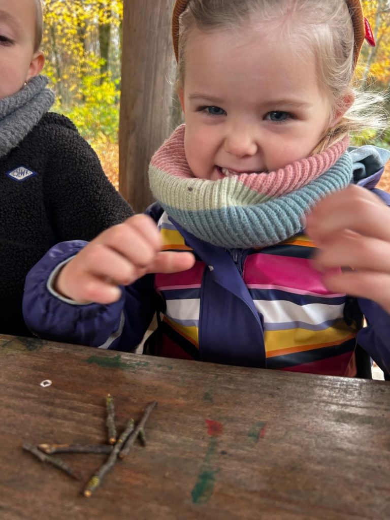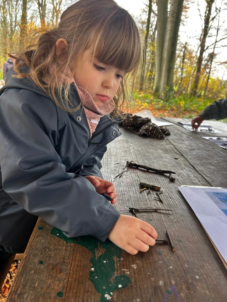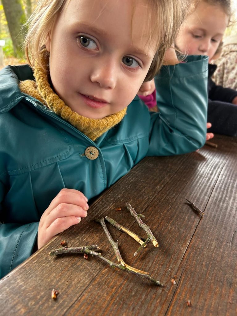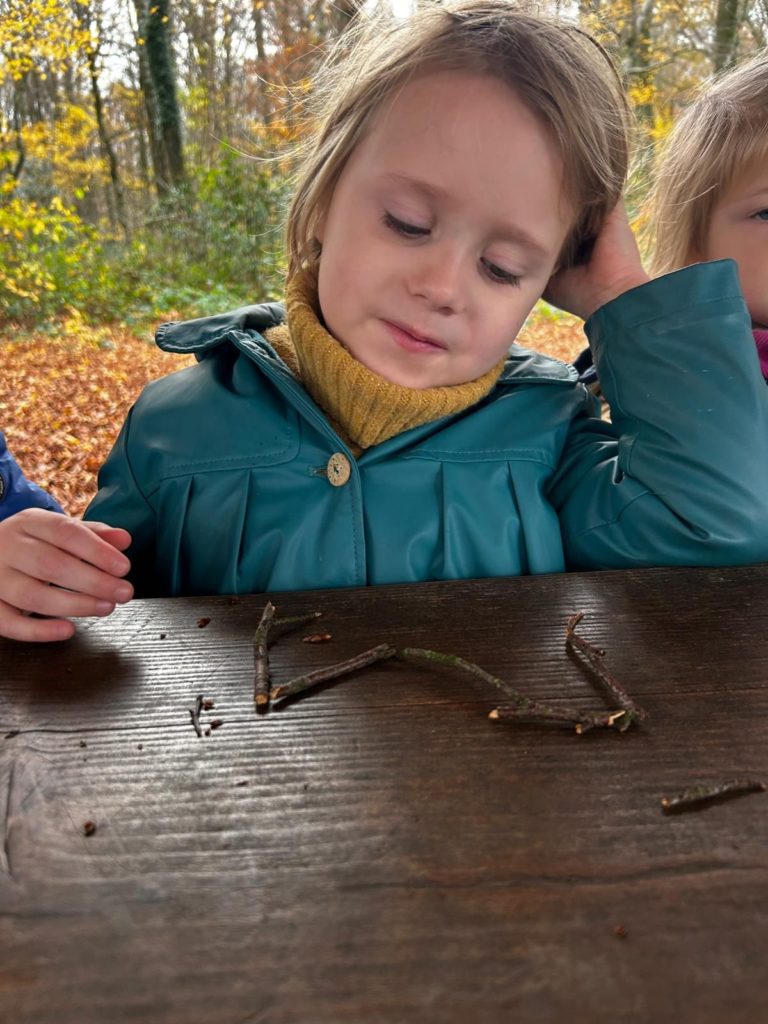 Ce vendredi 14 novembre 2025, les élèves de la classe de Madame Allison (M2-3) ont mis le cap sur le Bois didactique de Gesves pour vivre une expérience originale et ludique. Dans ce cadre naturel, ils ont eu l’occasion de manipuler des morceaux de bois afin de composer leur prénom.