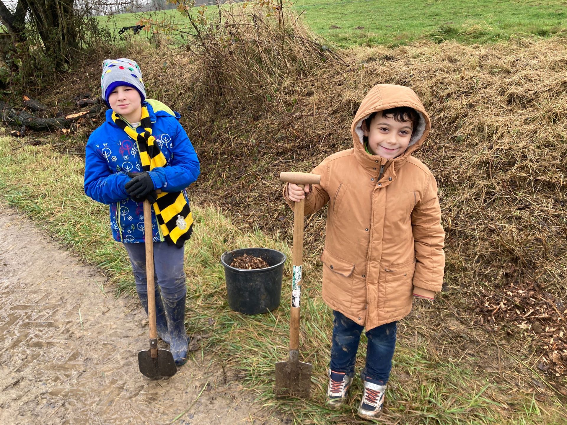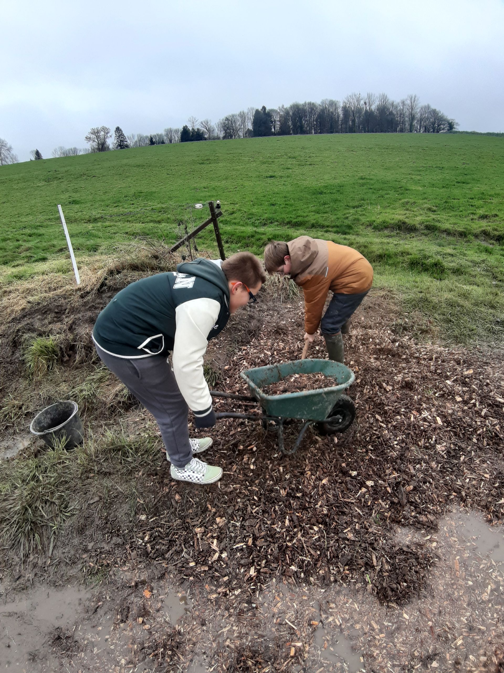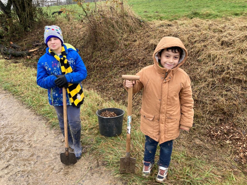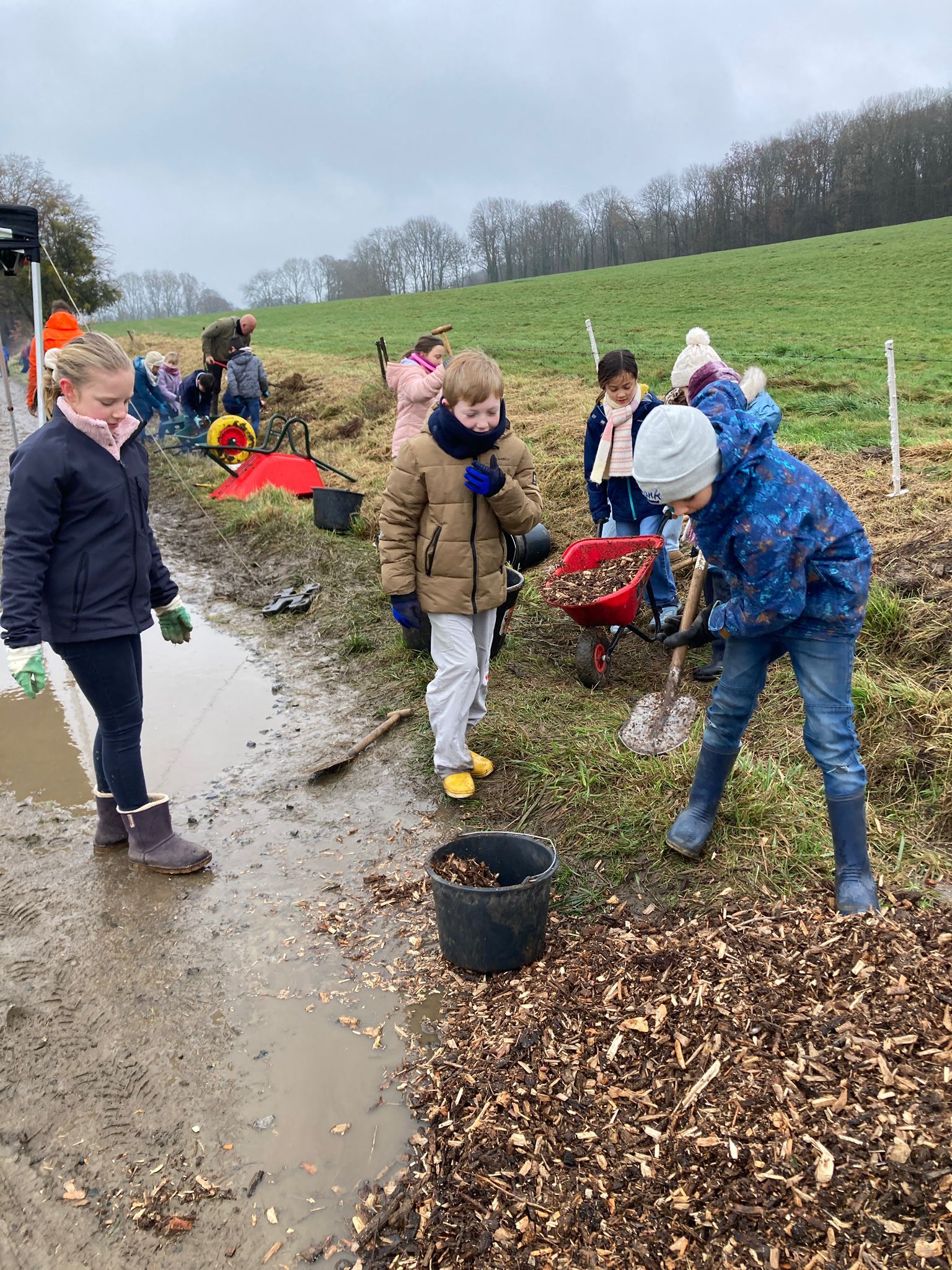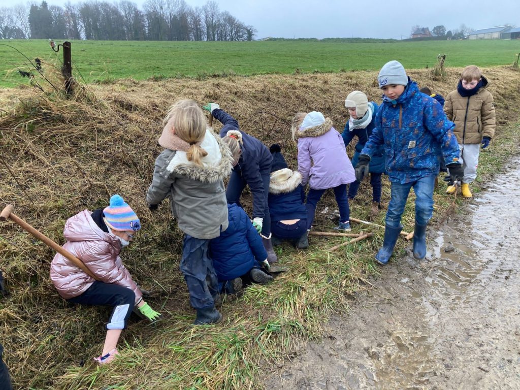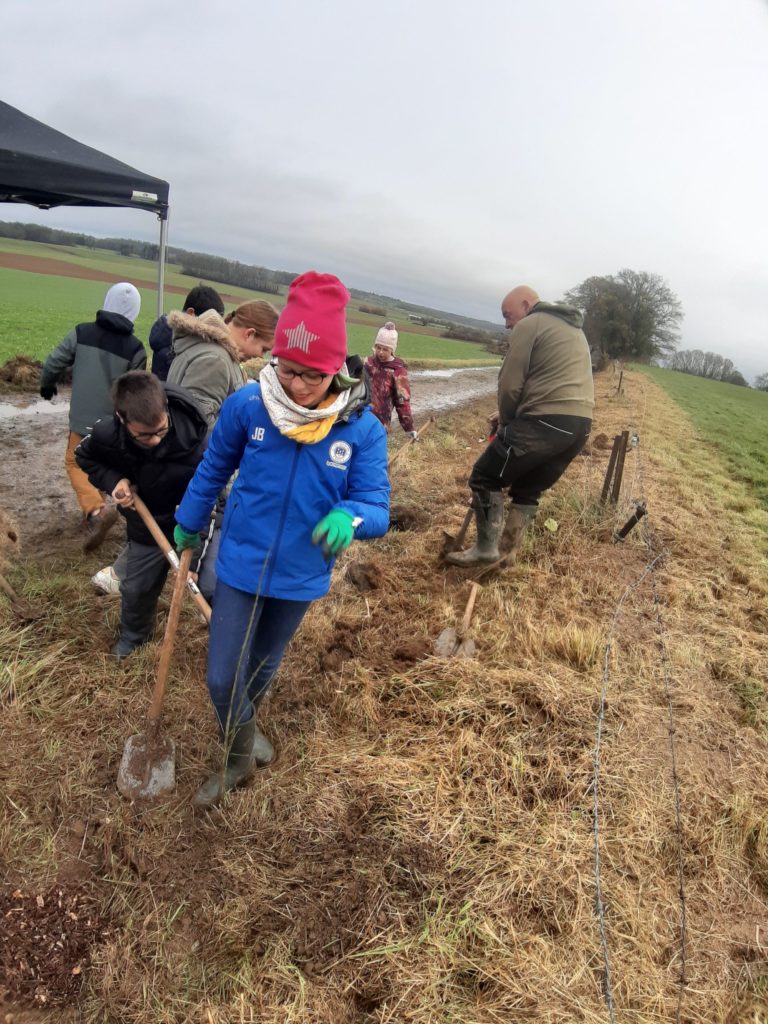 Ce vendredi 28 novembre 2025, les enfants de nos classes primaires ont retroussé leurs manches pour participer à l’opération Haie-Lève, organisée en partenariat avec le Parc naturel « Cœur du Condroz ». Aux côtés de Pierre André, dit « Pelo », véritable pilier de ce projet plusieurs années, les enfants ont poursuivi la plantation des arbustes qui finiront un jour à créer une haie vivante reliant le village de Sorée à la Bouchaille.