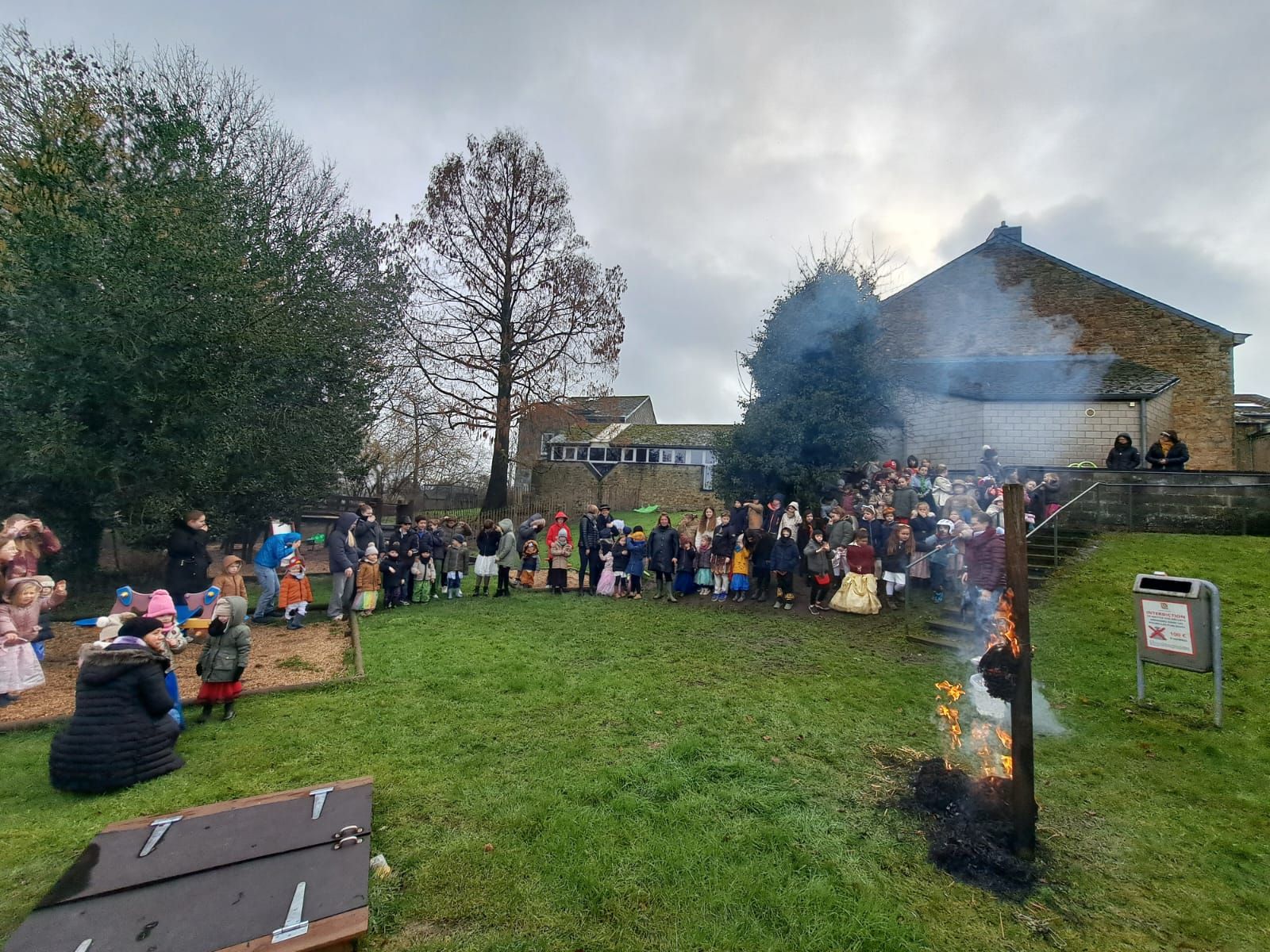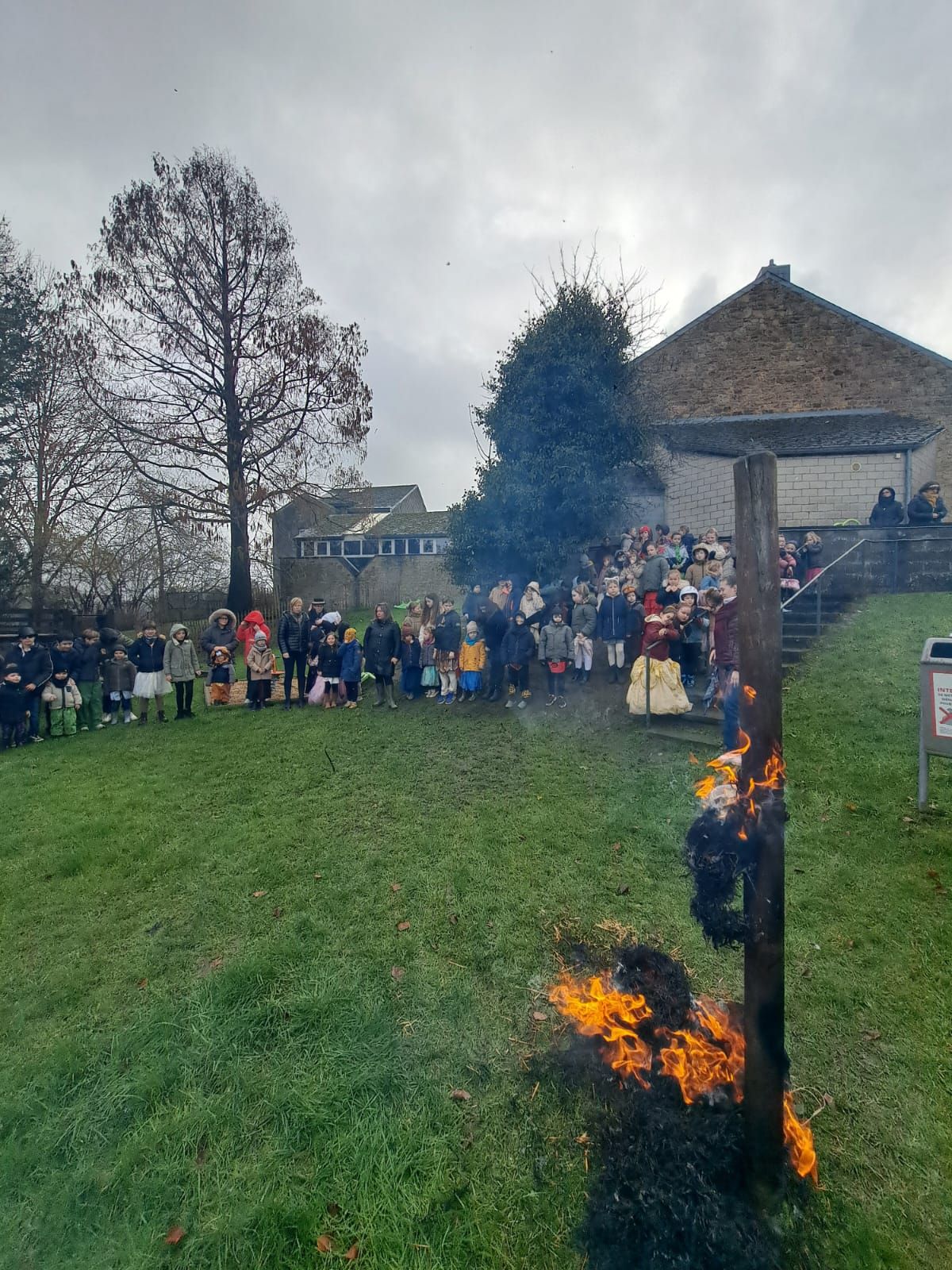 Chaque année, les élèves de l’école de la Croisette perpétuent un rituel qui traverse les générations : brûler le bonhomme Hiver, Gérand Menfroid, désormais dans sa quatrième incarnation. En voyant les flammes emporter cette figure symbolique, les enfants se sont rappelé que ce geste ancestral servait autrefois à chasser l’hiver, à dire adieu au froid et à appeler le retour de la lumière. Ce moment relie l’école à des gestes simples, presque oubliés, qui racontent notre rapport aux saisons et au temps qui passe.