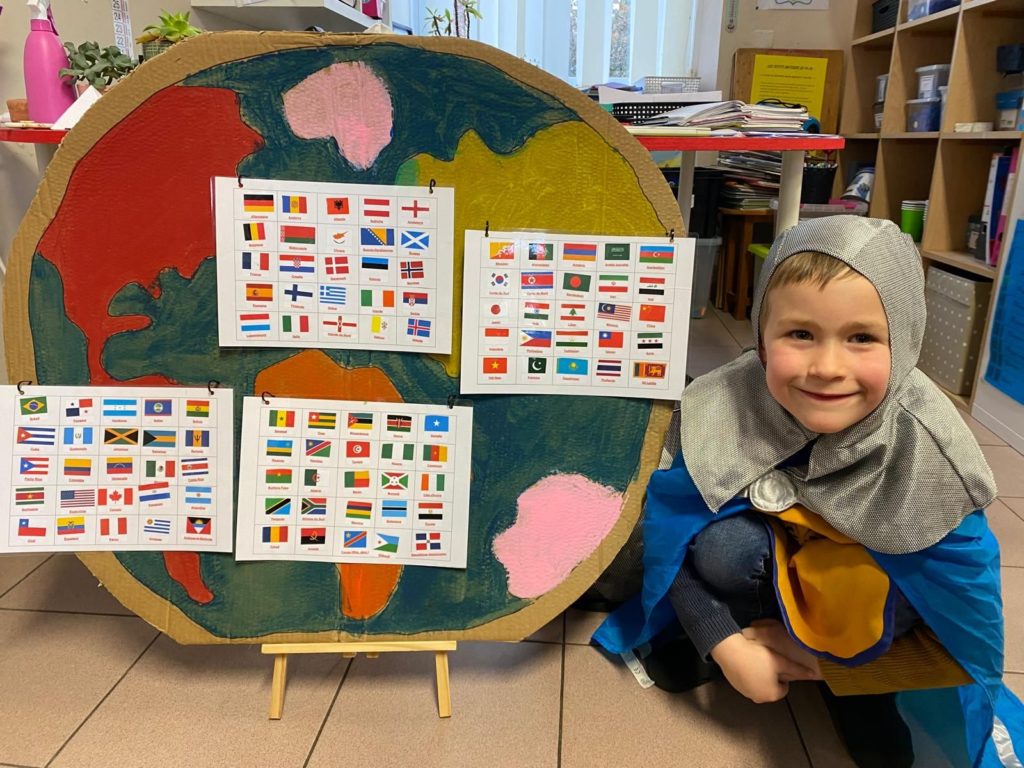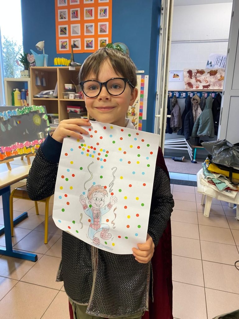 C’est costumés que les élèves de Madame Valérie (classe de P1‑2) ont organisé l’exposition de leurs œuvres réalisées pour les 100 jours d’école. Cette activité a pour objectif de valoriser le travail accompli depuis le début de l’année, de renforcer la confiance des enfants et de donner du sens au projet des 100 jours en montrant l’aboutissement d’un effort régulier. Les élèves ont préparé leurs productions à domicile, choisi la manière de les présenter et réfléchi à la meilleure façon d’expliquer leur démarche. Le jour de l’exposition, ils ont installé leurs réalisations en classe sous forme de parcours, accueillant les visiteurs avec enthousiasme et présentant eux‑mêmes leurs créations. Cette exposition à notre communauté scolaire de découvrir le travail des enfants, tout en offrant à ces derniers une véritable expérience d’expression, de coopération et de mise en valeur de leurs apprentissages.