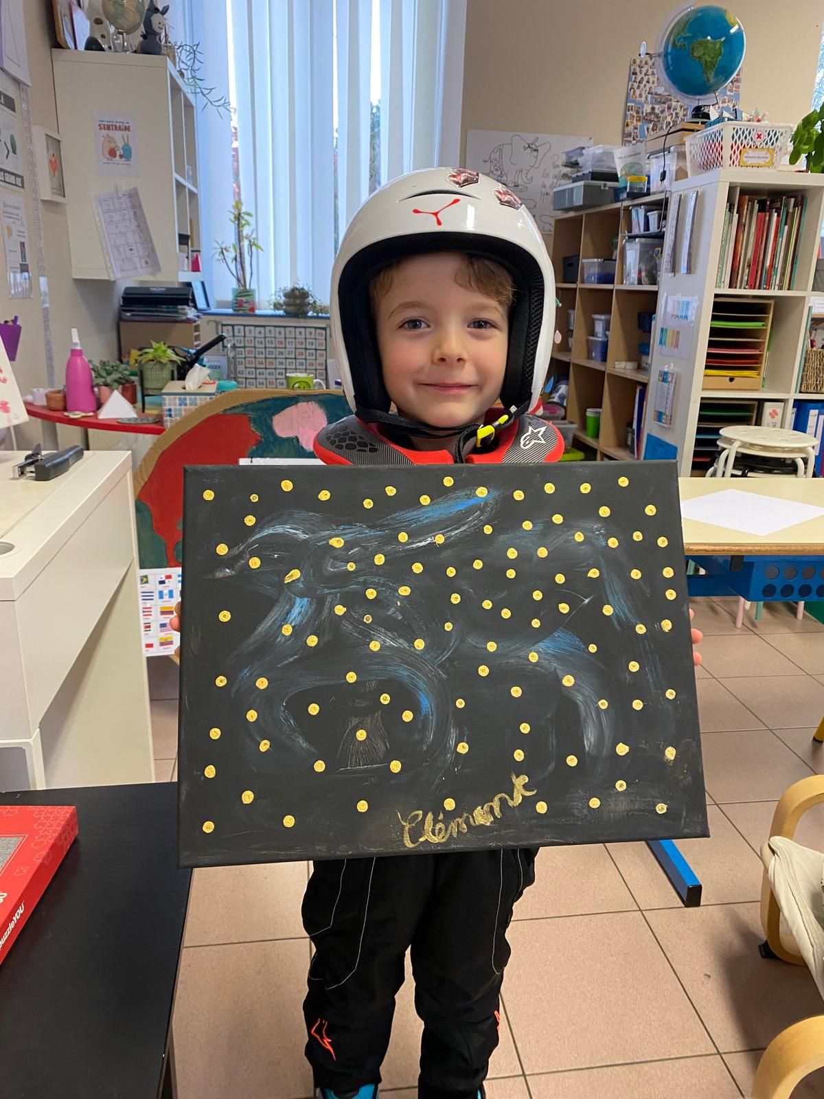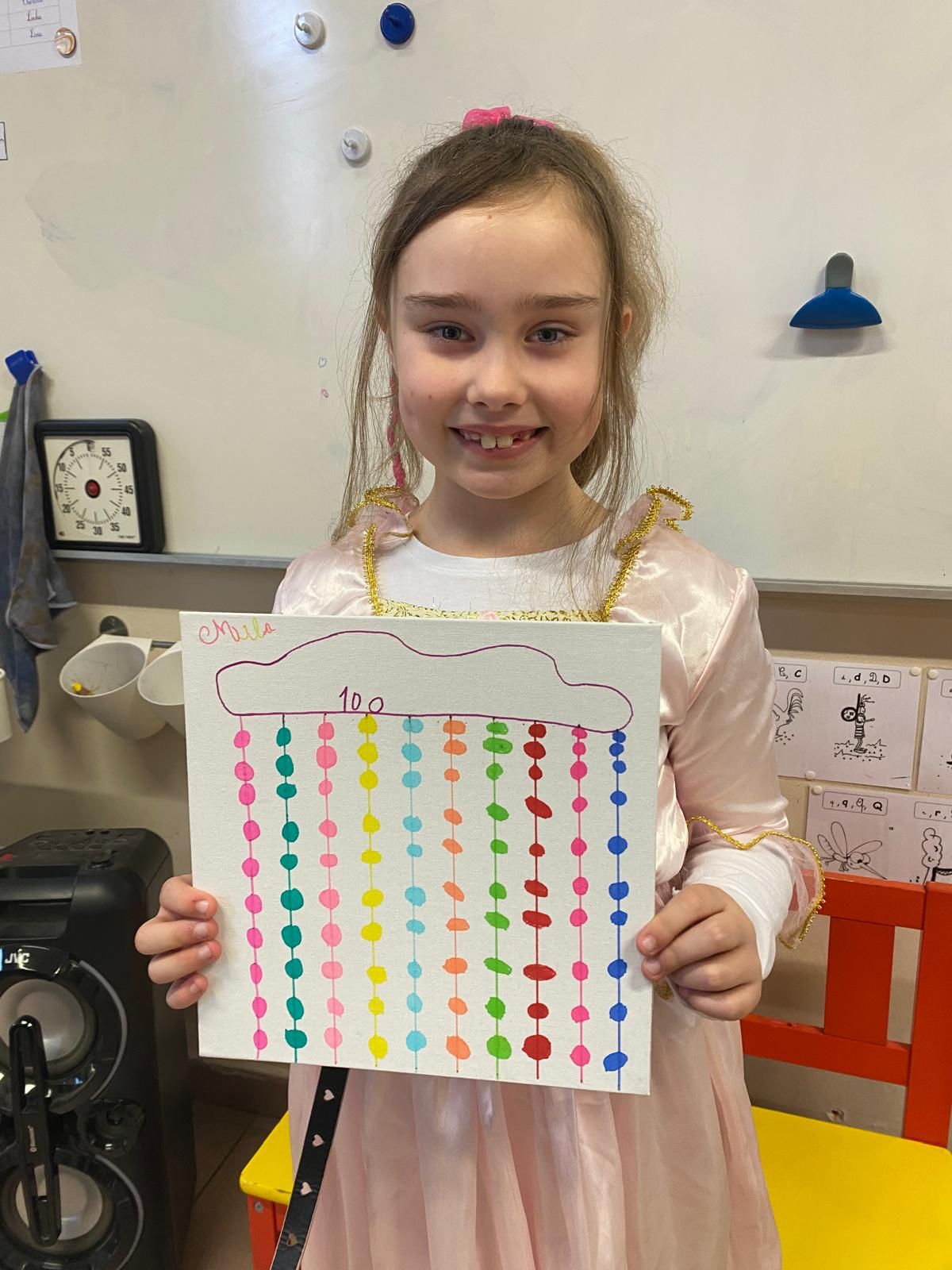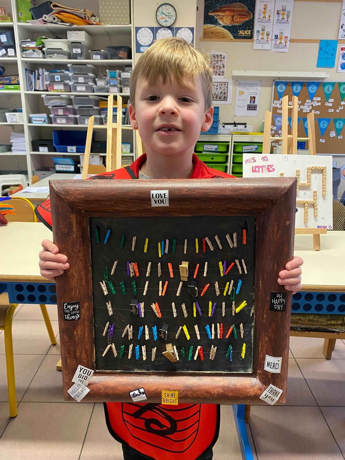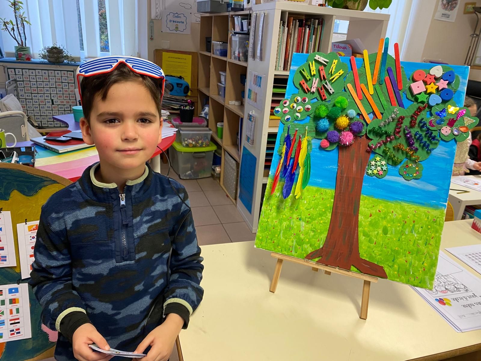 C’est costumés que les élèves de Madame Valérie (classe de P1‑2) ont organisé l’exposition de leurs œuvres réalisées pour les 100 jours d’école. Cette activité a pour objectif de valoriser le travail accompli depuis le début de l’année, de renforcer la confiance des enfants et de donner du sens au projet des 100 jours en montrant l’aboutissement d’un effort régulier. Les élèves ont préparé leurs productions à domicile, choisi la manière de les présenter et réfléchi à la meilleure façon d’expliquer leur démarche. Le jour de l’exposition, ils ont installé leurs réalisations en classe sous forme de parcours, accueillant les visiteurs avec enthousiasme et présentant eux‑mêmes leurs créations. Cette exposition à notre communauté scolaire de découvrir le travail des enfants, tout en offrant à ces derniers une véritable expérience d’expression, de coopération et de mise en valeur de leurs apprentissages.