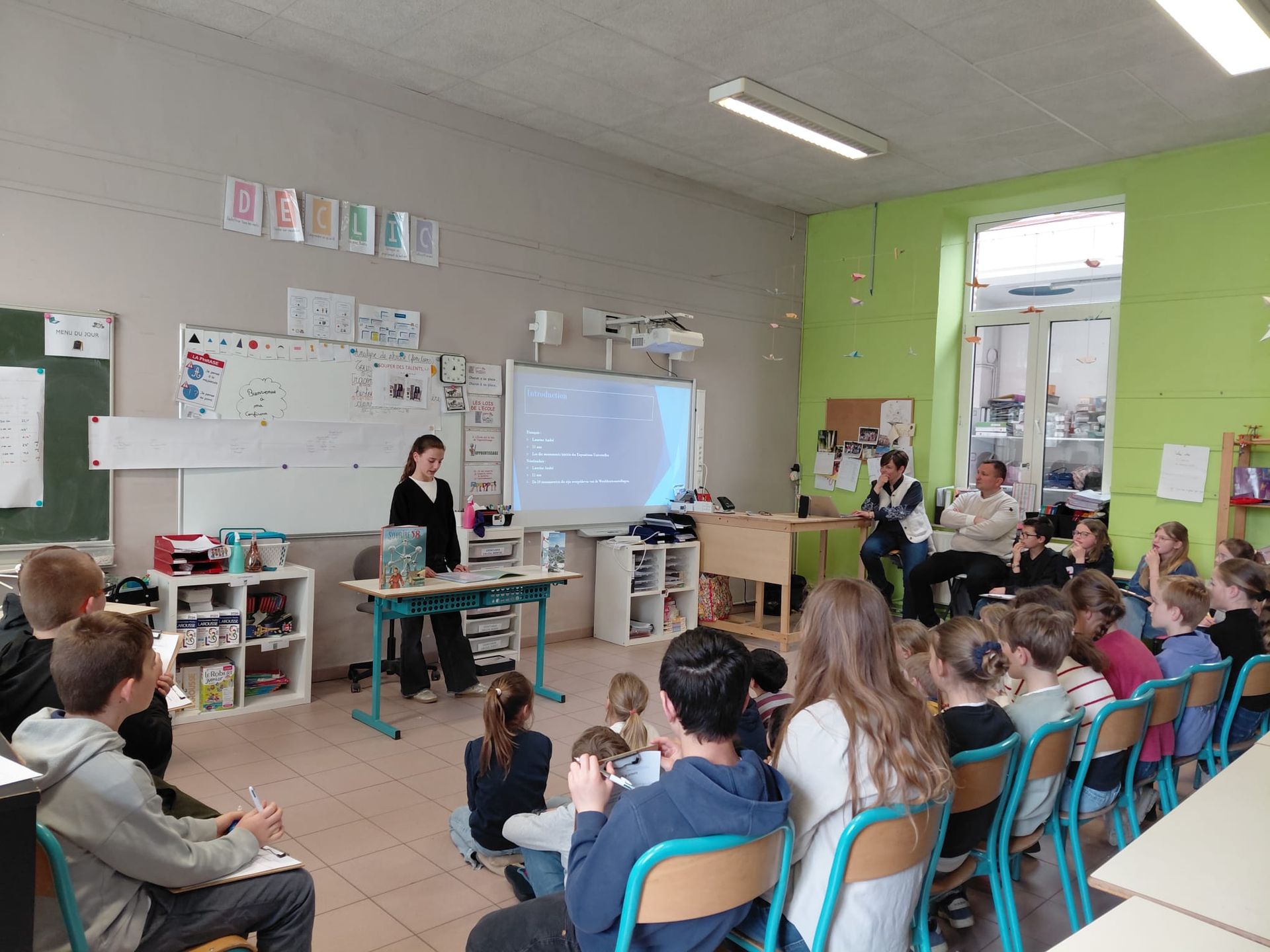 Pendant près de deux heures, Laurine a captivé son jeune public. Elle a guidé les élèves à travers des monuments célèbres et d’autres plus méconnus, tout en faisant revivre l’histoire fascinante des Expositions universelles. Les enfants n’ont pas vu le temps passer tant la présentation était vivante, structurée et enthousiasmante.